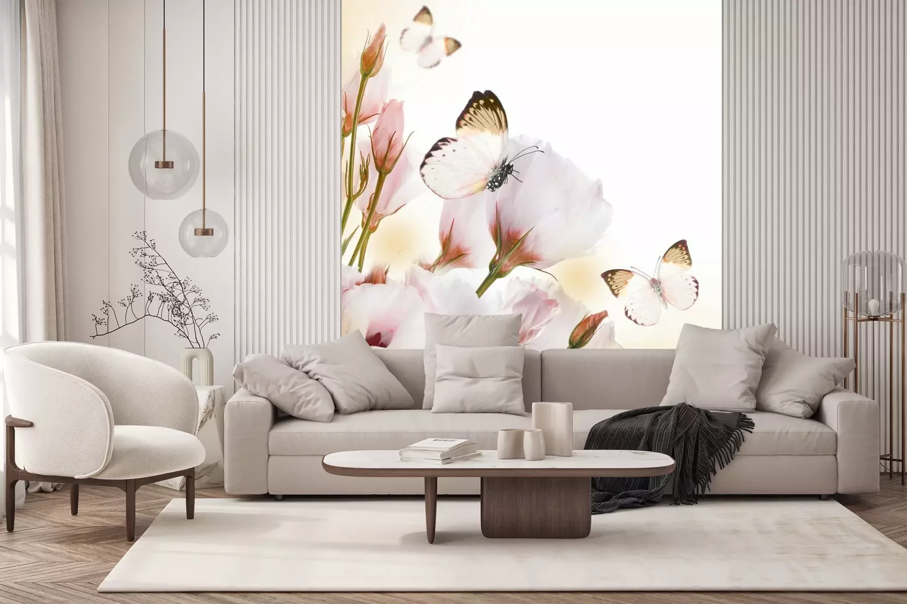 Het materiaal Premium+ is een gestructureerd vinyl op vlies met een gewicht van 255 g/m², dat kleine oneffenheden in de muur effectief camoufleert. De subtiele structuur van fijn zand geeft het oppervlak een exclusieve uitstraling, terwijl de halfmatte afwerking de diepte van de kleuren benadrukt. Het materiaal is dampdoorlatend, waardoor het ook in de keuken en badkamer kan worden gebruikt. De maximale breedte van één baan bedraagt 100 cm – bij grotere afmetingen wordt het fotobehang in meerdere gelijke banen verdeeld. De lijm wordt direct op de muur aangebracht en het behang wordt rand-aan-rand geplakt, wat zorgt voor een esthetisch resultaat zonder zichtbare naden. Het oppervlak kan gemakkelijk worden schoongemaakt door het voorzichtig af te nemen met een vochtige doek.