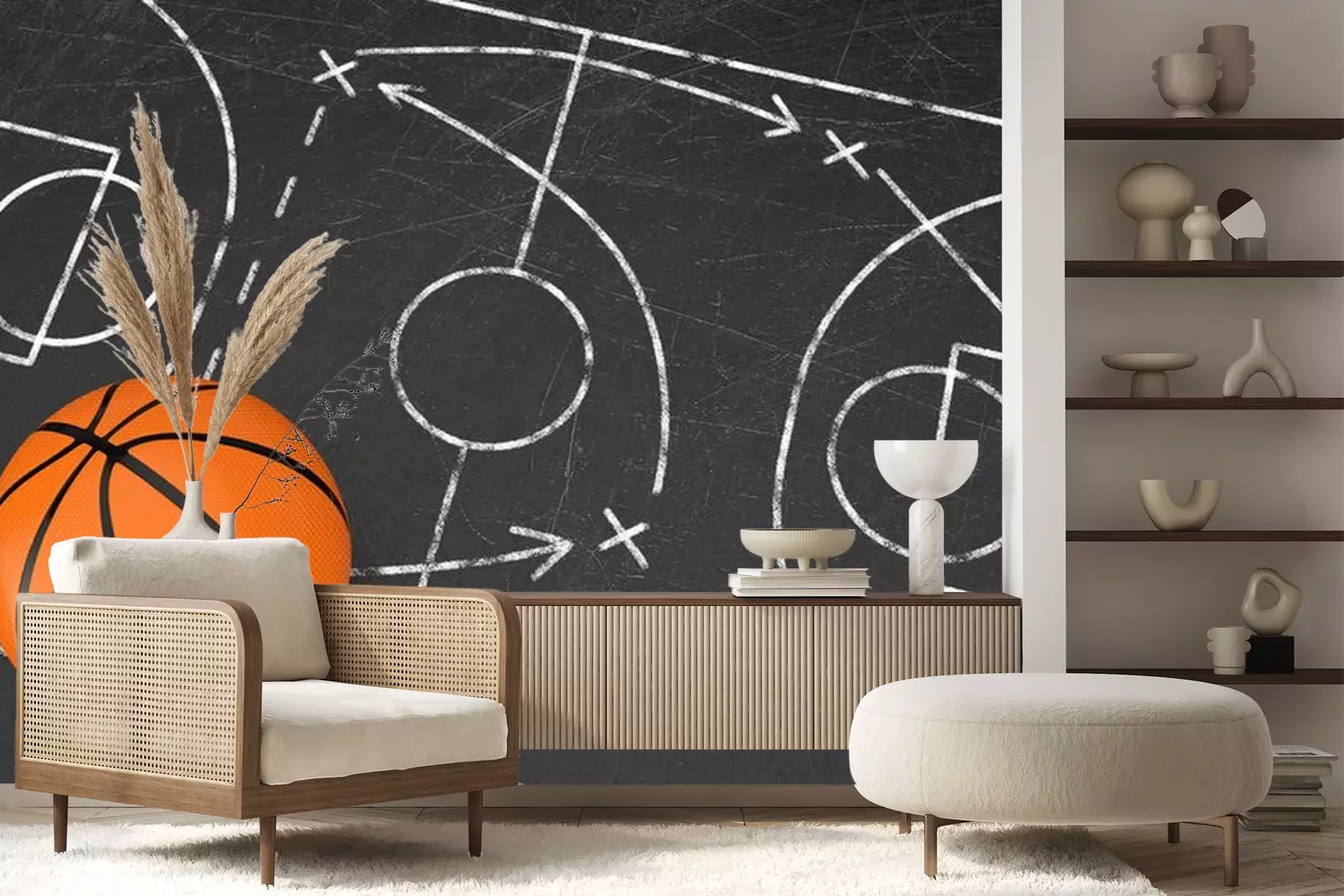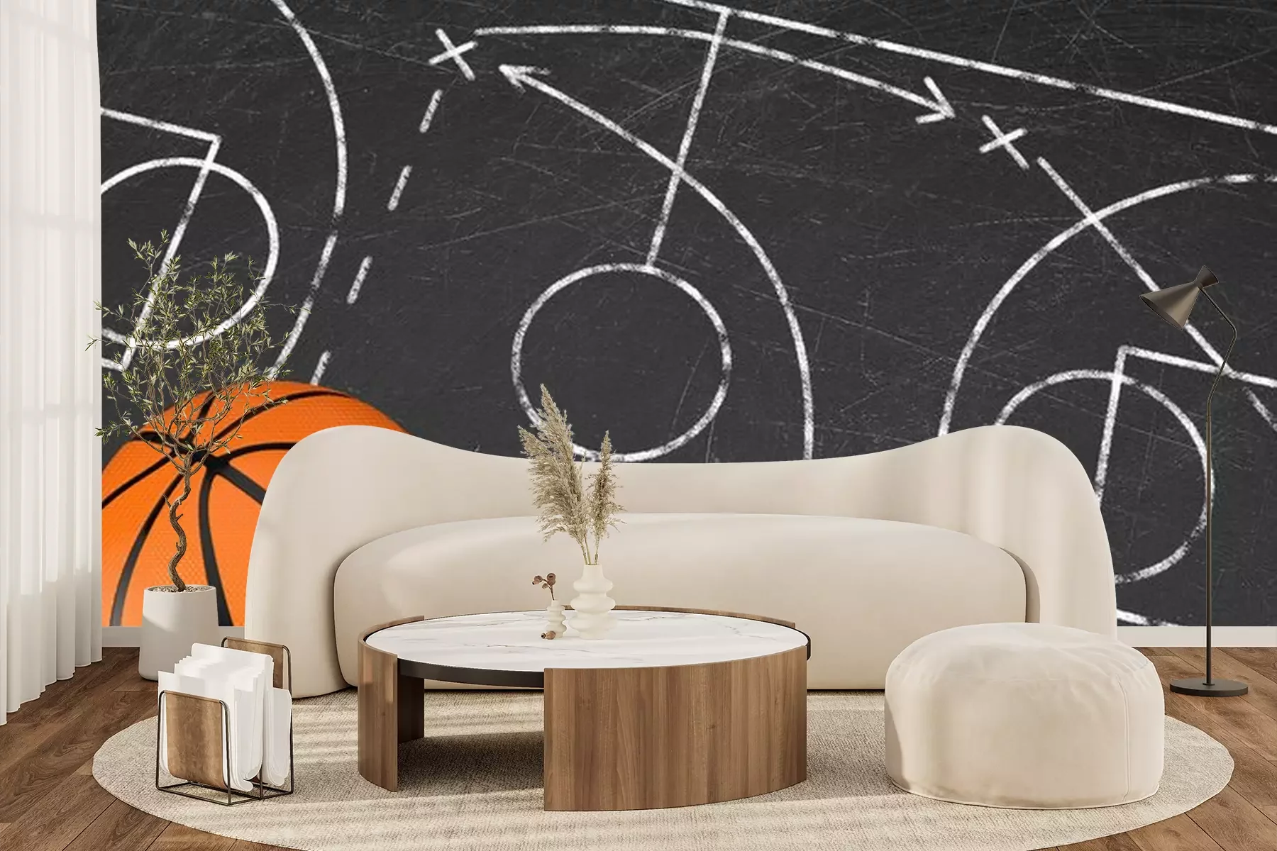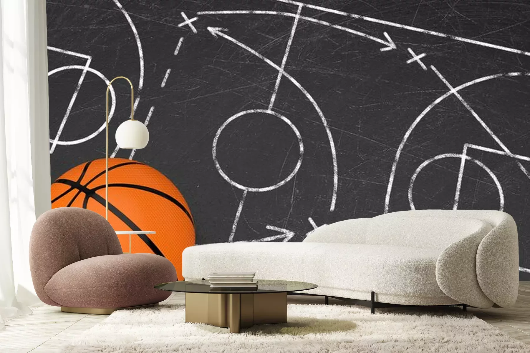 Fotobehang Concept van basketbaltactiek met bal