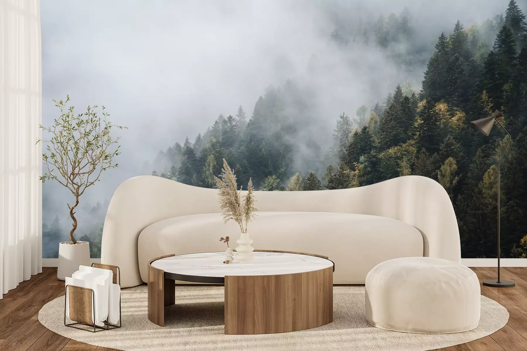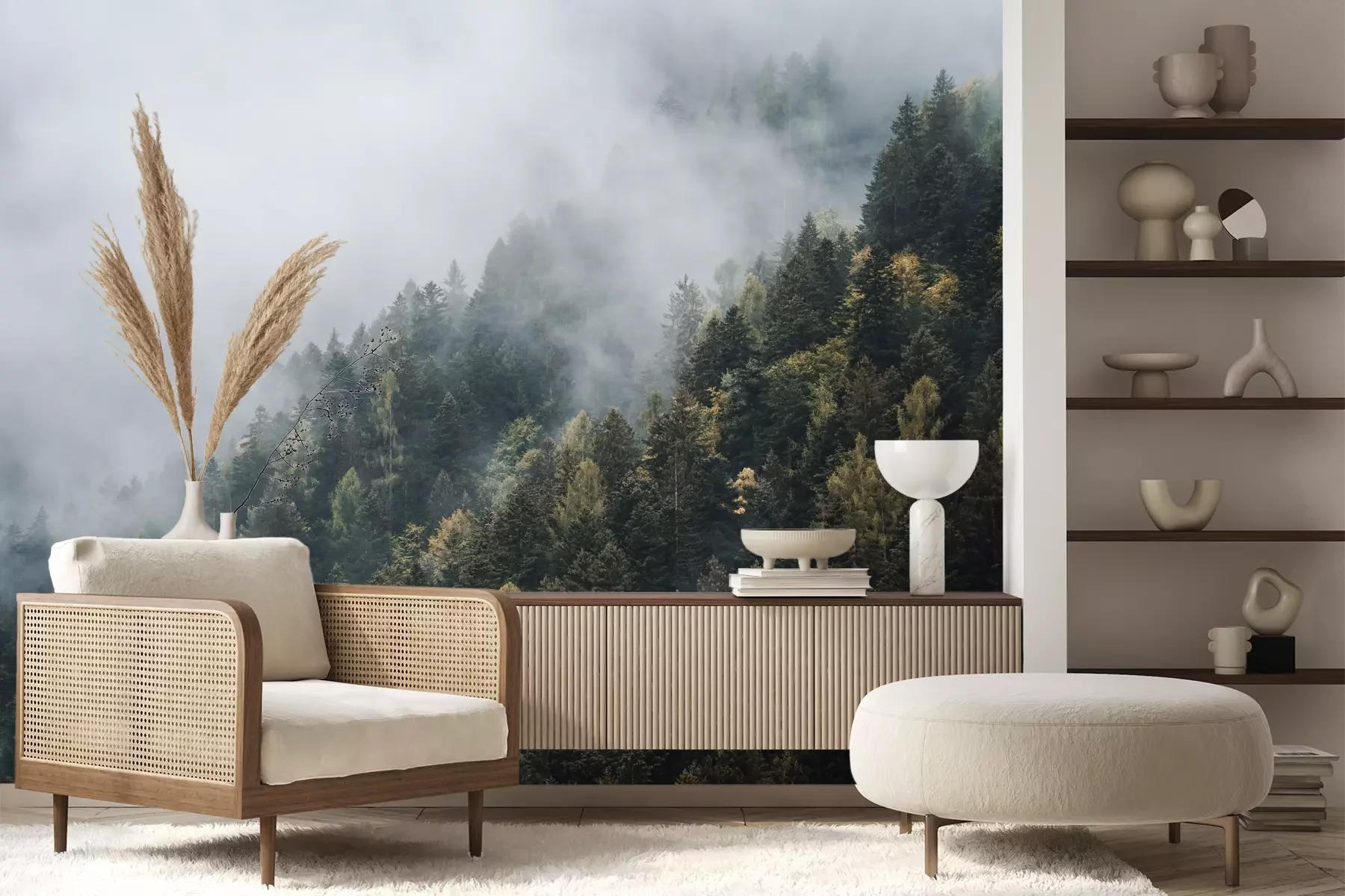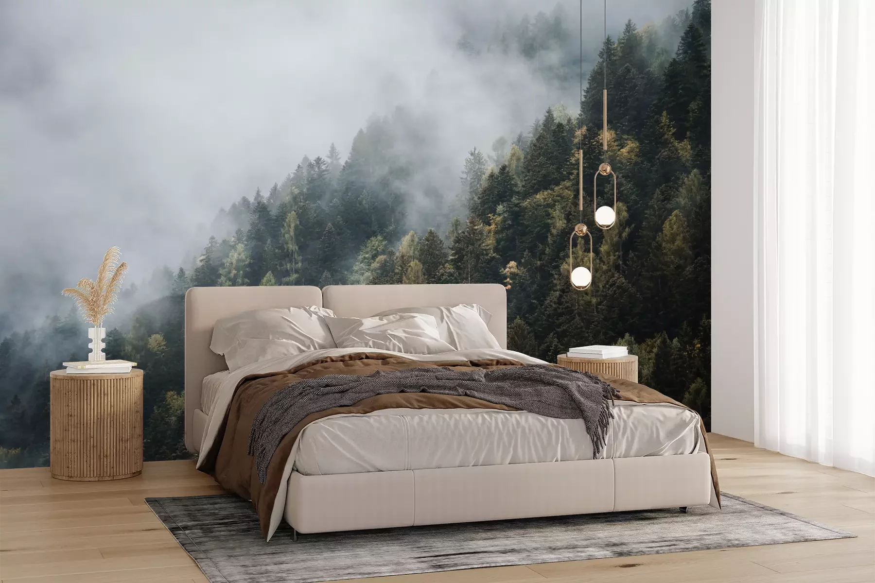 Het materiaal Premium+ is een gestructureerd vinyl op vlies met een gewicht van 255 g/m², dat kleine oneffenheden in de muur effectief camoufleert. De subtiele structuur van fijn zand geeft het oppervlak een exclusieve uitstraling, terwijl de halfmatte afwerking de diepte van de kleuren benadrukt. Het materiaal is dampdoorlatend, waardoor het ook in de keuken en badkamer kan worden gebruikt. De maximale breedte van één baan bedraagt 100 cm – bij grotere afmetingen wordt het fotobehang in meerdere gelijke banen verdeeld. De lijm wordt direct op de muur aangebracht en het behang wordt rand-aan-rand geplakt, wat zorgt voor een esthetisch resultaat zonder zichtbare naden. Het oppervlak kan gemakkelijk worden schoongemaakt door het voorzichtig af te nemen met een vochtige doek.