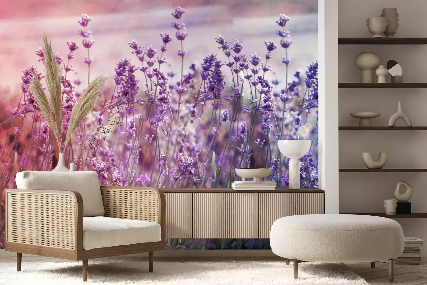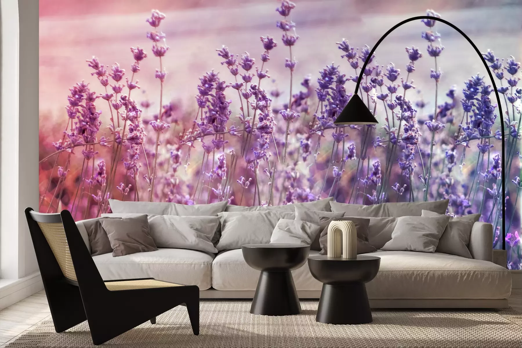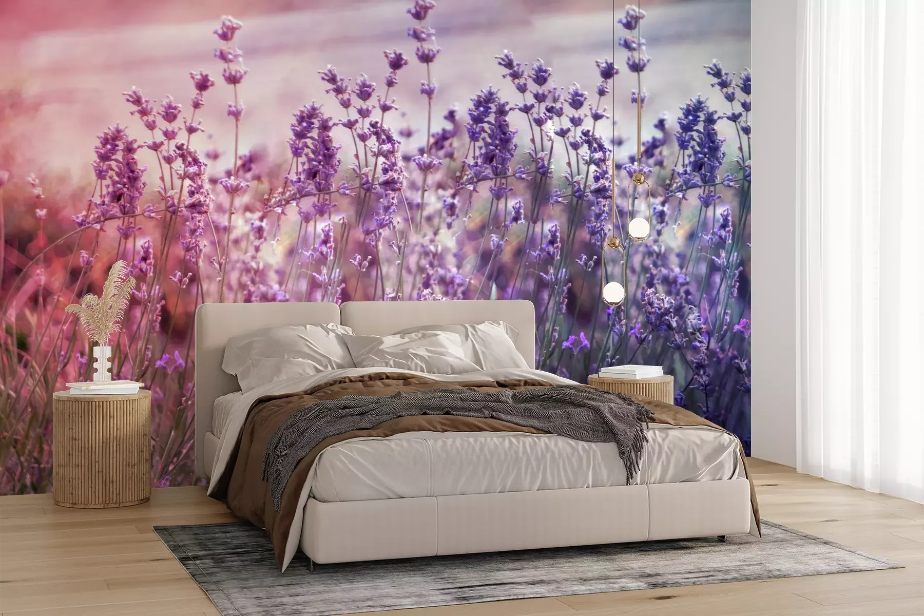Het materiaal Premium+ is een gestructureerd vinyl op vlies met een gewicht van 255 g/m², dat kleine oneffenheden in de muur effectief camoufleert. De subtiele structuur van fijn zand geeft het oppervlak een exclusieve uitstraling, terwijl de halfmatte afwerking de diepte van de kleuren benadrukt. Het materiaal is dampdoorlatend, waardoor het ook in de keuken en badkamer kan worden gebruikt. De maximale breedte van één baan bedraagt 100 cm – bij grotere afmetingen wordt het fotobehang in meerdere gelijke banen verdeeld. De lijm wordt direct op de muur aangebracht en het behang wordt rand-aan-rand geplakt, wat zorgt voor een esthetisch resultaat zonder zichtbare naden. Het oppervlak kan gemakkelijk worden schoongemaakt door het voorzichtig af te nemen met een vochtige doek.