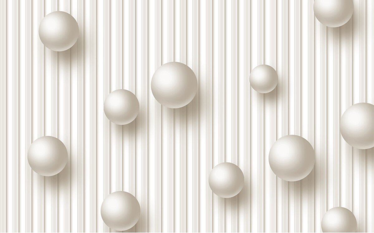 Fotobehang: Crèmekleurige 3D-ballen op een gestreepte achtergrond