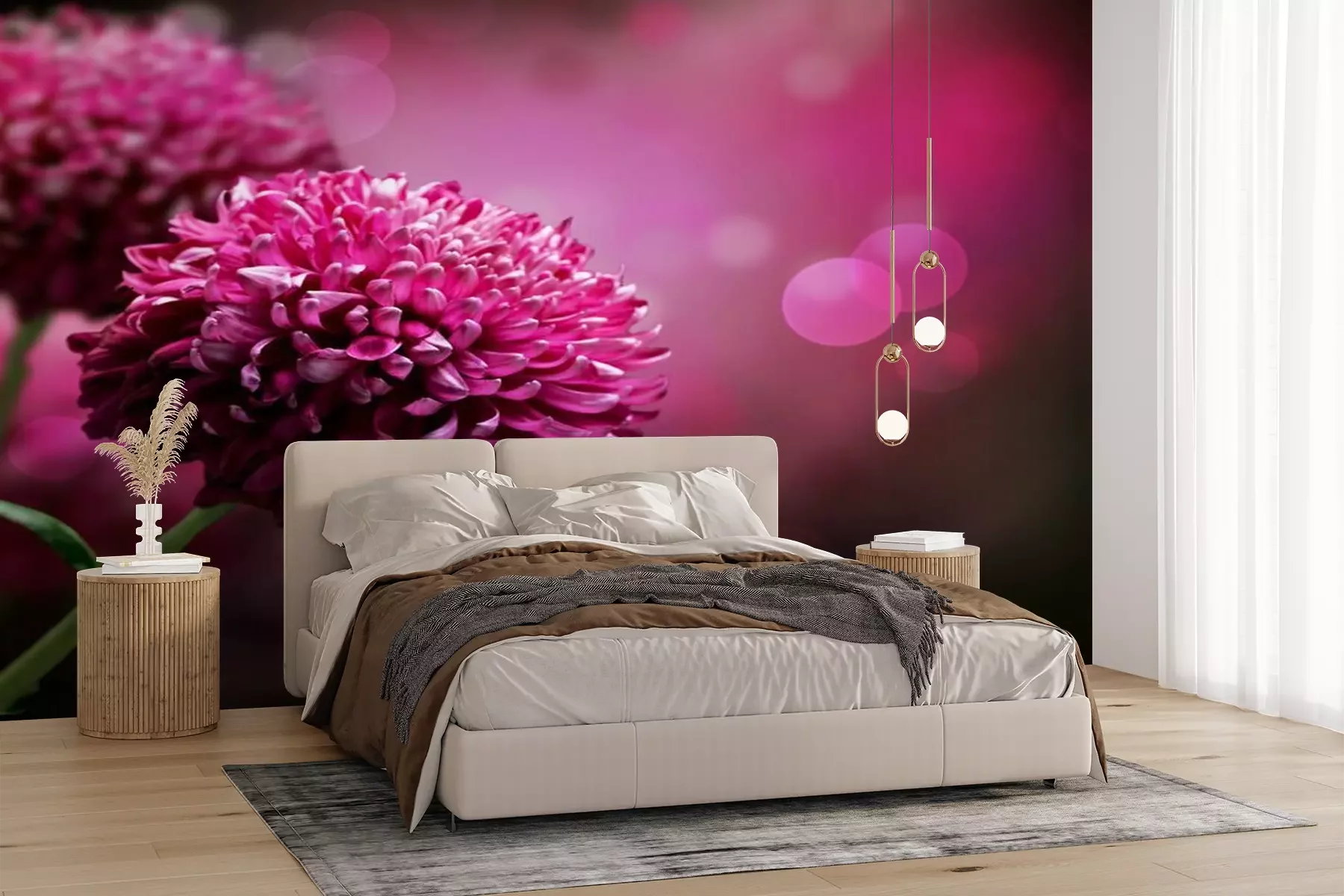 Het materiaal Premium+ is een gestructureerd vinyl op vlies met een gewicht van 255 g/m², dat kleine oneffenheden in de muur effectief camoufleert. De subtiele structuur van fijn zand geeft het oppervlak een exclusieve uitstraling, terwijl de halfmatte afwerking de diepte van de kleuren benadrukt. Het materiaal is dampdoorlatend, waardoor het ook in de keuken en badkamer kan worden gebruikt. De maximale breedte van één baan bedraagt 100 cm – bij grotere afmetingen wordt het fotobehang in meerdere gelijke banen verdeeld. De lijm wordt direct op de muur aangebracht en het behang wordt rand-aan-rand geplakt, wat zorgt voor een esthetisch resultaat zonder zichtbare naden. Het oppervlak kan gemakkelijk worden schoongemaakt door het voorzichtig af te nemen met een vochtige doek.