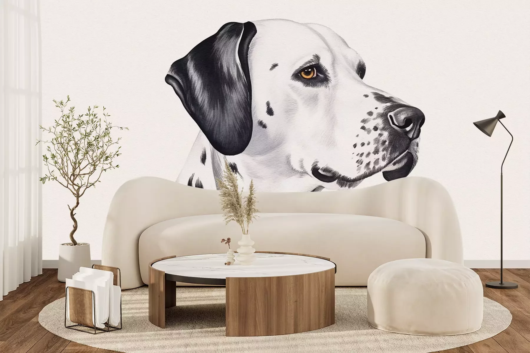 Het materiaal Standard is een hoogwaardig latexmateriaal met een glad, mat oppervlak. Dankzij de HP Latex-printtechnologie zijn de kleuren intens, duurzaam en UV-bestendig, waardoor het patroon jarenlang een onberispelijke uitstraling behoudt. Vervuilde oppervlakken kunnen voorzichtig worden afgeveegd met een droge doek. De maximale breedte van één baan bedraagt 95 cm of 105 cm – afhankelijk van de bestelde fotobehangbreedte. Bij grotere afmetingen wordt het patroon verdeeld over meerdere gelijkmatige banen. Het fotobehang wordt rand-aan-randaangebracht, wat vrijwel onzichtbare naden mogelijk maakt.