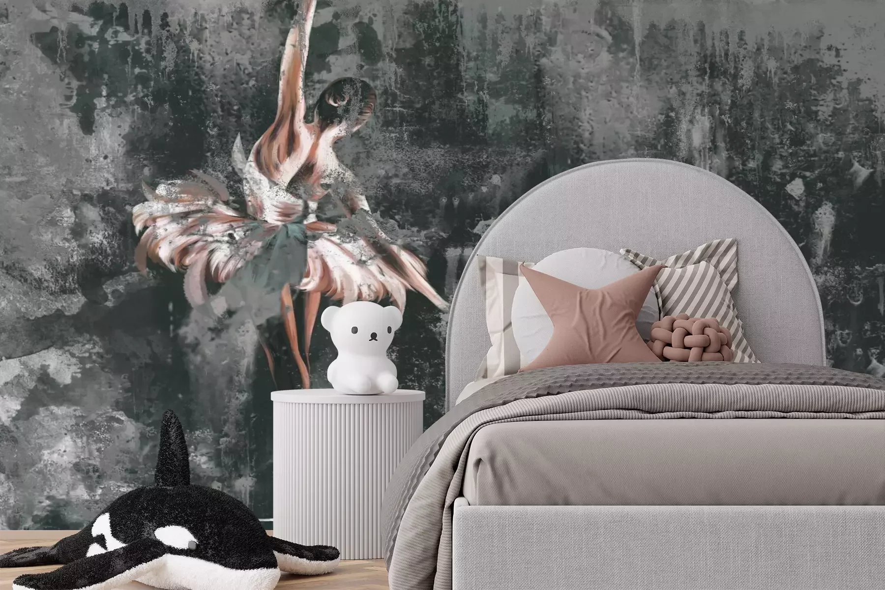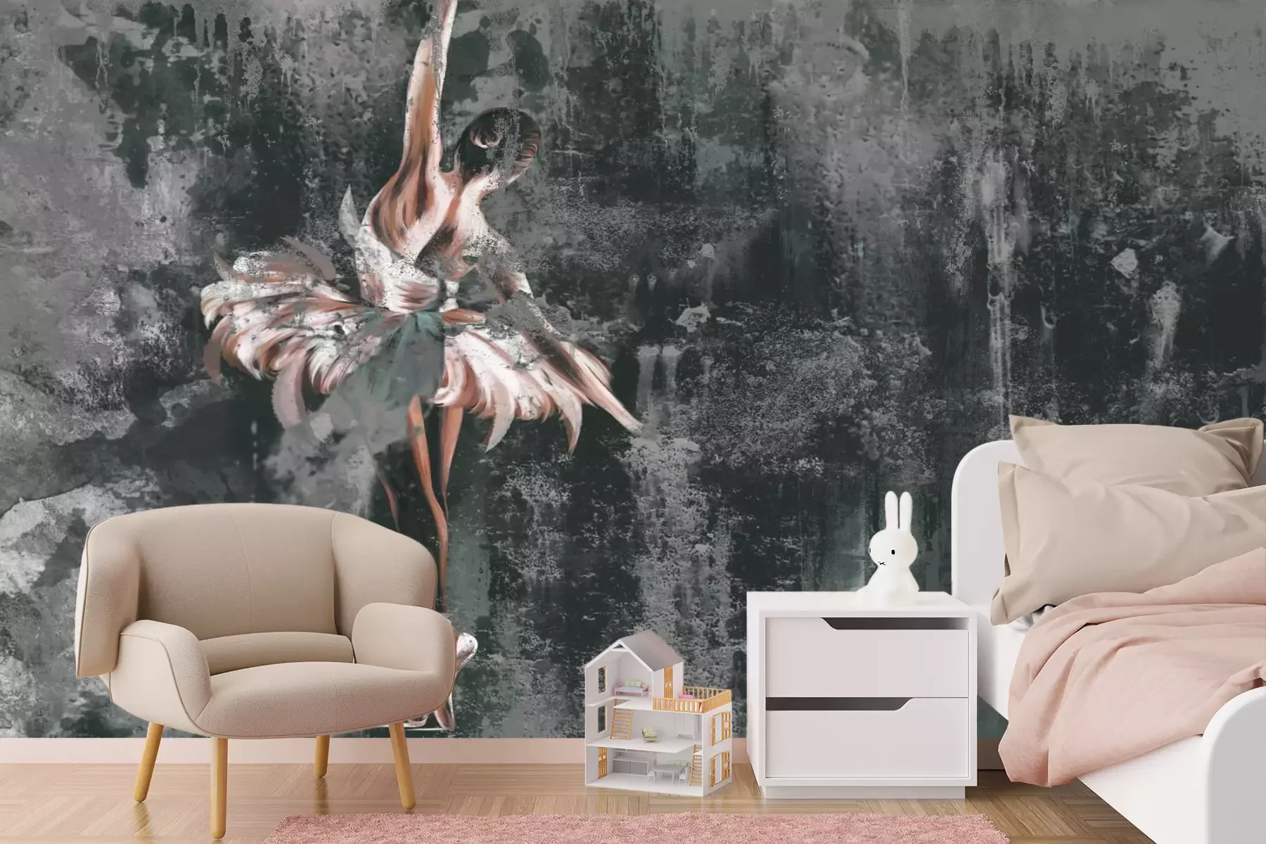 Het materiaal Premium+ is een gestructureerd vinyl op vlies met een gewicht van 255 g/m², dat kleine oneffenheden in de muur effectief camoufleert. De subtiele structuur van fijn zand geeft het oppervlak een exclusieve uitstraling, terwijl de halfmatte afwerking de diepte van de kleuren benadrukt. Het materiaal is dampdoorlatend, waardoor het ook in de keuken en badkamer kan worden gebruikt. De maximale breedte van één baan bedraagt 100 cm – bij grotere afmetingen wordt het fotobehang in meerdere gelijke banen verdeeld. De lijm wordt direct op de muur aangebracht en het behang wordt rand-aan-rand geplakt, wat zorgt voor een esthetisch resultaat zonder zichtbare naden. Het oppervlak kan gemakkelijk worden schoongemaakt door het voorzichtig af te nemen met een vochtige doek.
