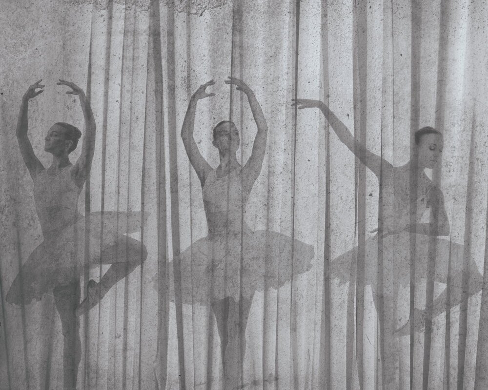 Fotobehang: Dansende ballerina's op een gestreepte achtergrond met textuur
