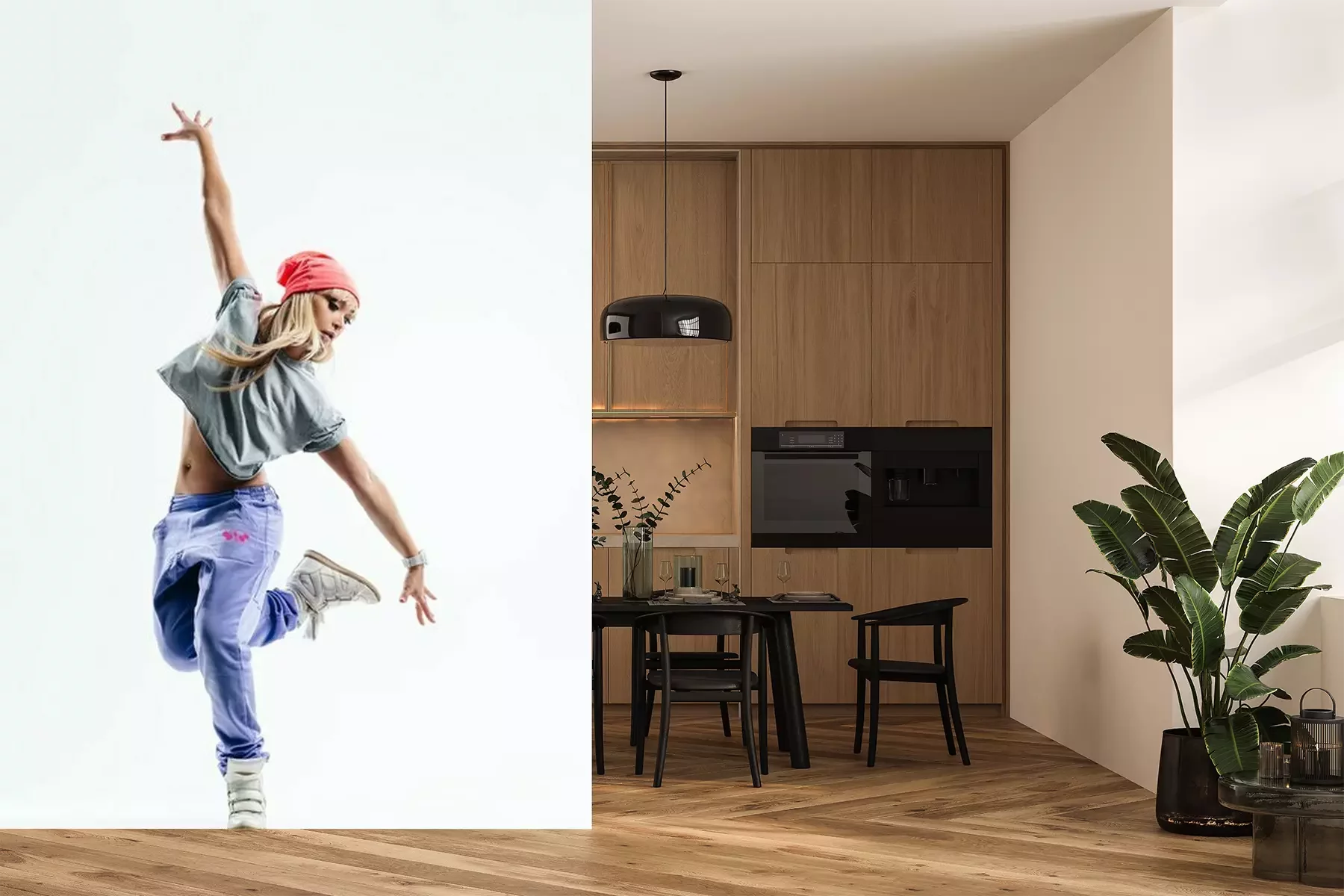 Het materiaal Premium+ is een gestructureerd vinyl op vlies met een gewicht van 255 g/m², dat kleine oneffenheden in de muur effectief camoufleert. De subtiele structuur van fijn zand geeft het oppervlak een exclusieve uitstraling, terwijl de halfmatte afwerking de diepte van de kleuren benadrukt. Het materiaal is dampdoorlatend, waardoor het ook in de keuken en badkamer kan worden gebruikt. De maximale breedte van één baan bedraagt 100 cm – bij grotere afmetingen wordt het fotobehang in meerdere gelijke banen verdeeld. De lijm wordt direct op de muur aangebracht en het behang wordt rand-aan-rand geplakt, wat zorgt voor een esthetisch resultaat zonder zichtbare naden. Het oppervlak kan gemakkelijk worden schoongemaakt door het voorzichtig af te nemen met een vochtige doek.