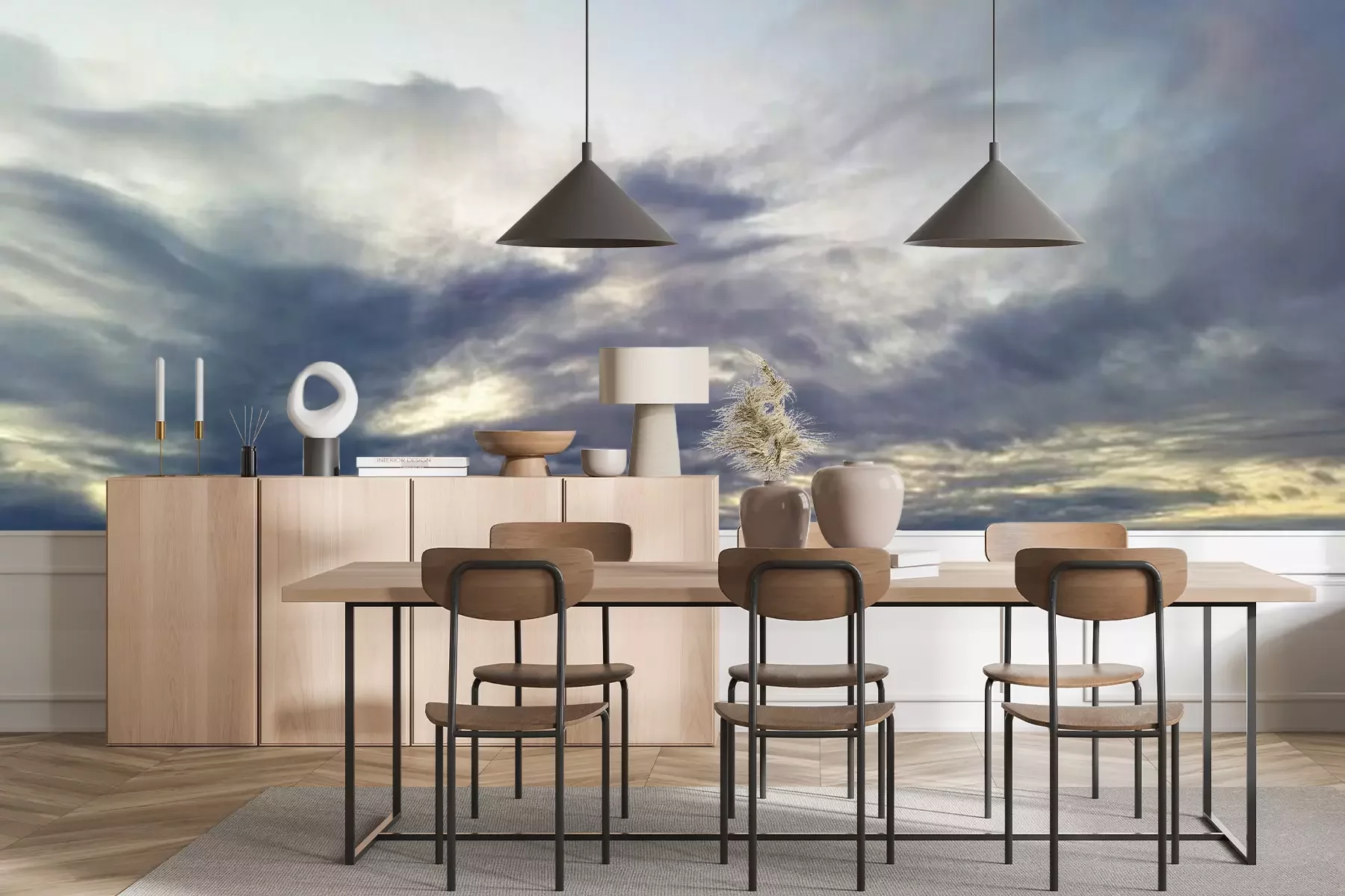 Het materiaal Premium+ is een gestructureerd vinyl op vlies met een gewicht van 255 g/m², dat kleine oneffenheden in de muur effectief camoufleert. De subtiele structuur van fijn zand geeft het oppervlak een exclusieve uitstraling, terwijl de halfmatte afwerking de diepte van de kleuren benadrukt. Het materiaal is dampdoorlatend, waardoor het ook in de keuken en badkamer kan worden gebruikt. De maximale breedte van één baan bedraagt 100 cm – bij grotere afmetingen wordt het fotobehang in meerdere gelijke banen verdeeld. De lijm wordt direct op de muur aangebracht en het behang wordt rand-aan-rand geplakt, wat zorgt voor een esthetisch resultaat zonder zichtbare naden. Het oppervlak kan gemakkelijk worden schoongemaakt door het voorzichtig af te nemen met een vochtige doek.