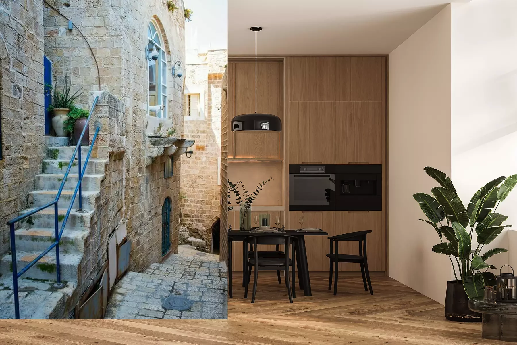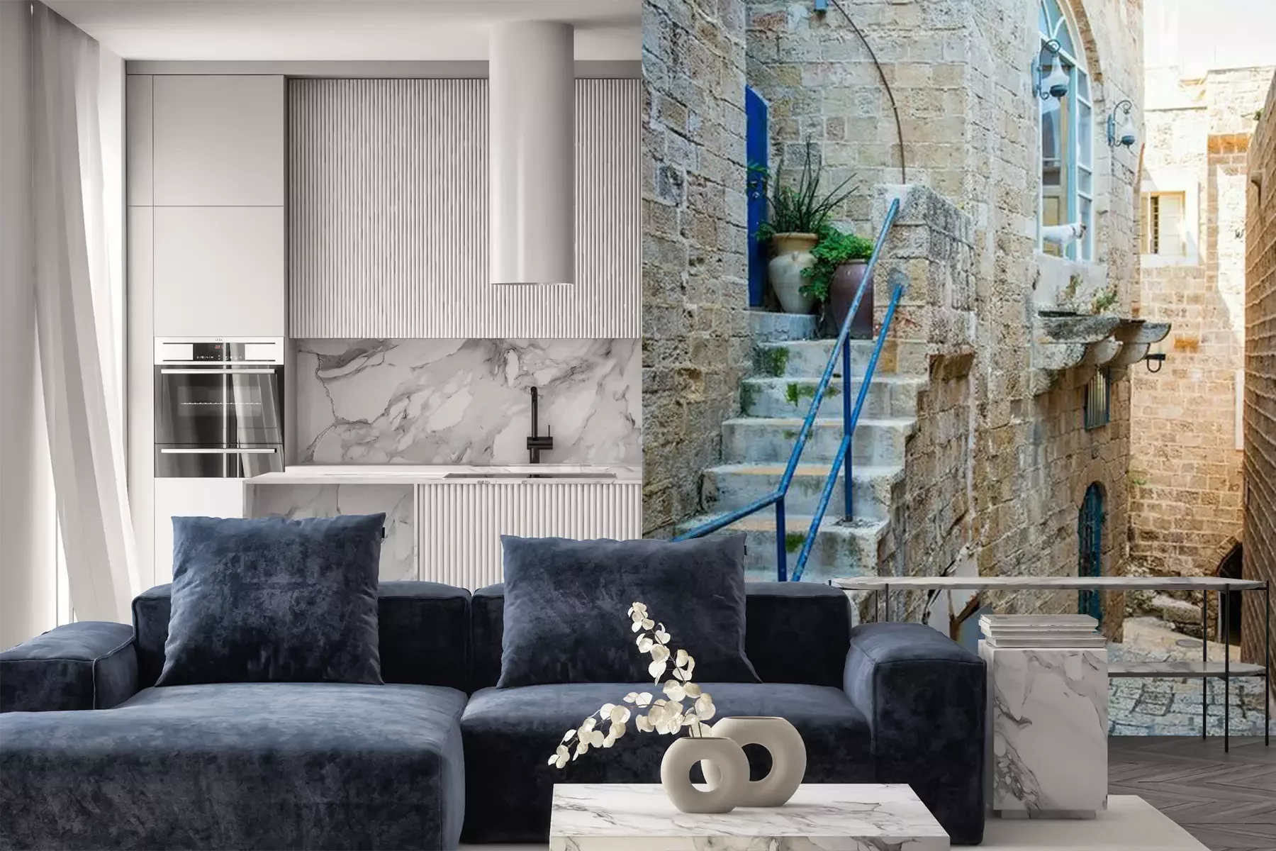 Het materiaal Premium is een glad vinyl op vlies, dat bestand is tegen uitrekken en vervorming. Het is dampdoorlatend – de muren kunnen vrij ademen – waardoor het geschikt is voor gebruik in de keuken en badkamer. Bij vervuiling kan het materiaal worden afgenomen met een vochtige doek. De maximale breedte van één baan bedraagt 95 of 105 cm, afhankelijk van de beschikbaarheid. Montage vindt plaats met de rand-aan-rand methode, wat een esthetisch resultaat zonder zichtbare naden oplevert. Omdat de lijm rechtstreeks op de muur wordt aangebracht, verloopt de installatie van het fotobehang snel en eenvoudig.