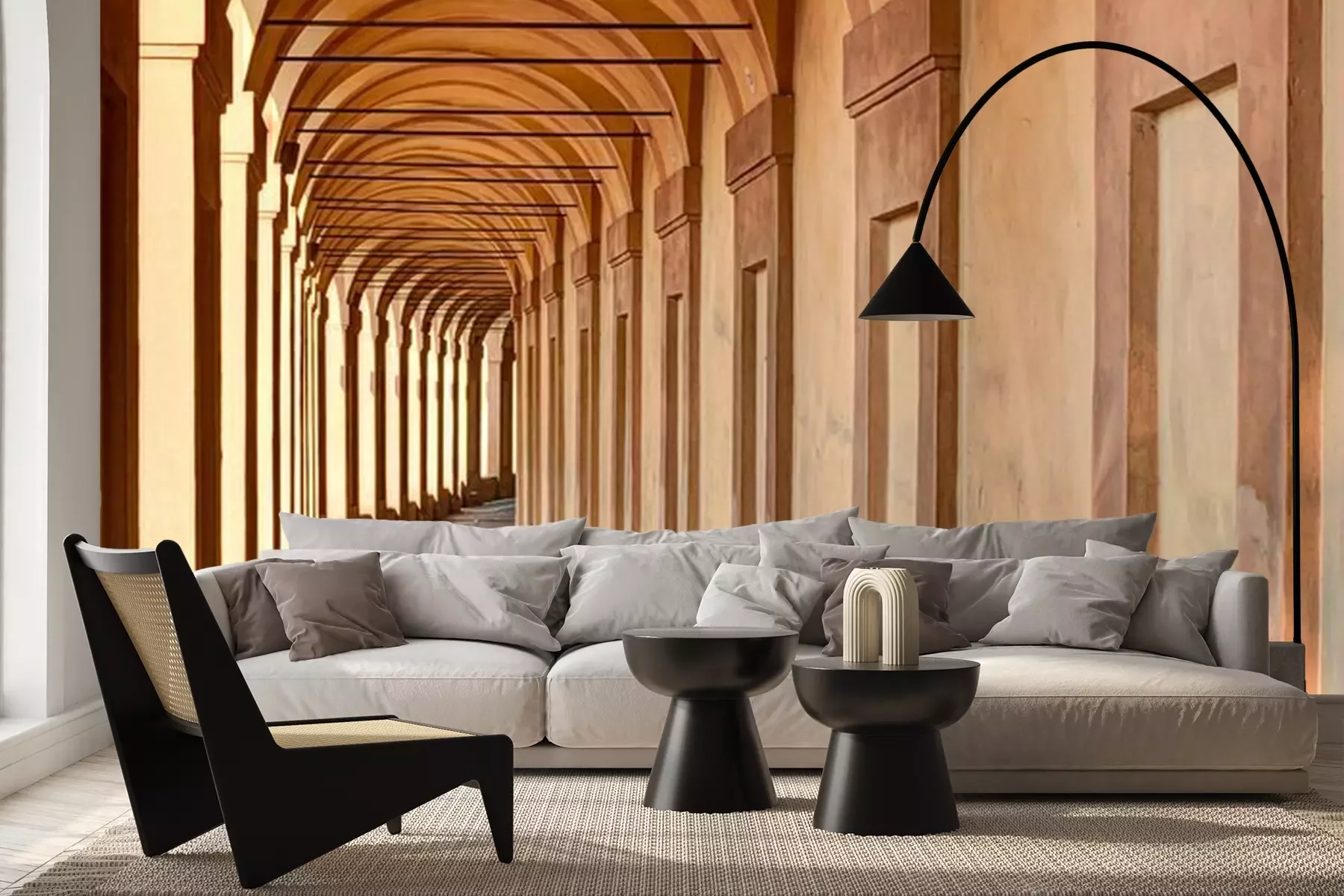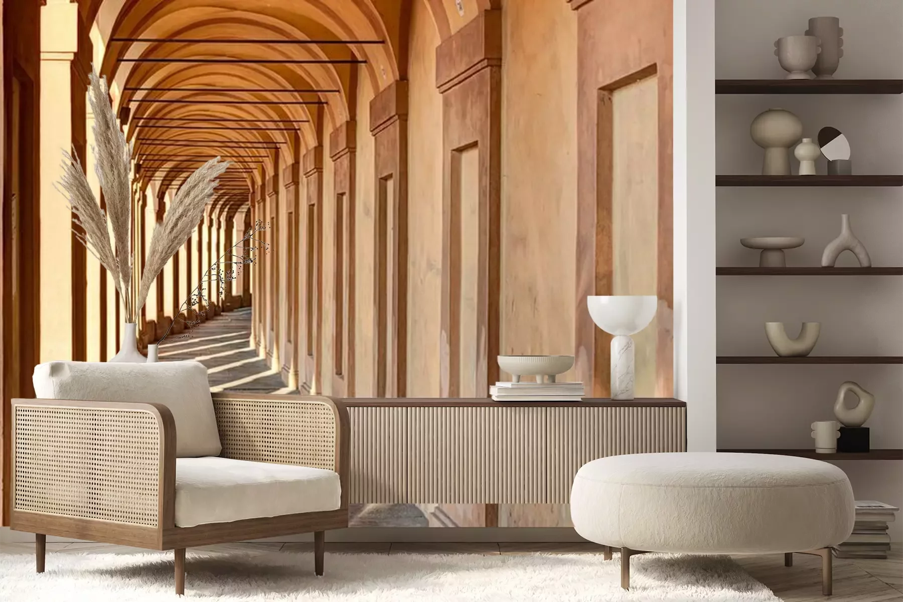 Het materiaal Premium+ is een gestructureerd vinyl op vlies met een gewicht van 255 g/m², dat kleine oneffenheden in de muur effectief camoufleert. De subtiele structuur van fijn zand geeft het oppervlak een exclusieve uitstraling, terwijl de halfmatte afwerking de diepte van de kleuren benadrukt. Het materiaal is dampdoorlatend, waardoor het ook in de keuken en badkamer kan worden gebruikt. De maximale breedte van één baan bedraagt 100 cm – bij grotere afmetingen wordt het fotobehang in meerdere gelijke banen verdeeld. De lijm wordt direct op de muur aangebracht en het behang wordt rand-aan-rand geplakt, wat zorgt voor een esthetisch resultaat zonder zichtbare naden. Het oppervlak kan gemakkelijk worden schoongemaakt door het voorzichtig af te nemen met een vochtige doek.