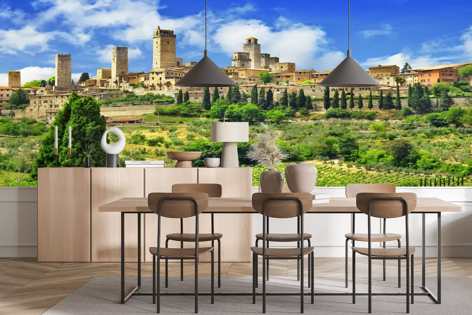 Het materiaal Premium+ is een gestructureerd vinyl op vlies met een gewicht van 255 g/m², dat kleine oneffenheden in de muur effectief camoufleert. De subtiele structuur van fijn zand geeft het oppervlak een exclusieve uitstraling, terwijl de halfmatte afwerking de diepte van de kleuren benadrukt. Het materiaal is dampdoorlatend, waardoor het ook in de keuken en badkamer kan worden gebruikt. De maximale breedte van één baan bedraagt 100 cm – bij grotere afmetingen wordt het fotobehang in meerdere gelijke banen verdeeld. De lijm wordt direct op de muur aangebracht en het behang wordt rand-aan-rand geplakt, wat zorgt voor een esthetisch resultaat zonder zichtbare naden. Het oppervlak kan gemakkelijk worden schoongemaakt door het voorzichtig af te nemen met een vochtige doek.