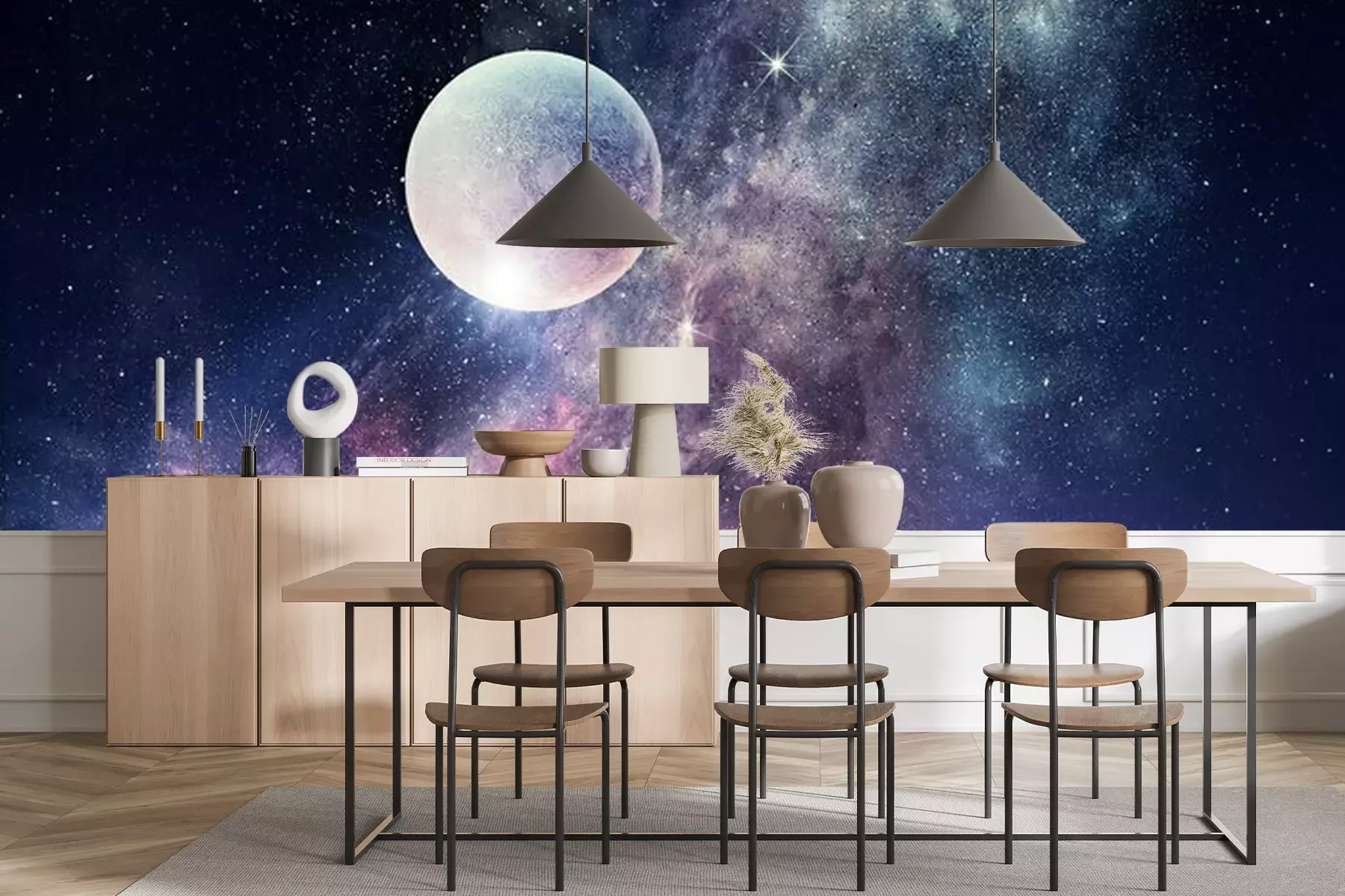 Heldere maan in de paarse ruimteFotobehang