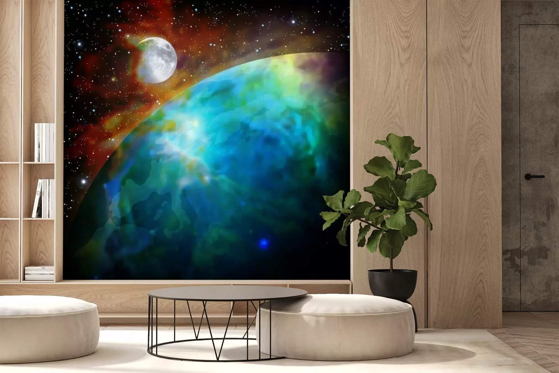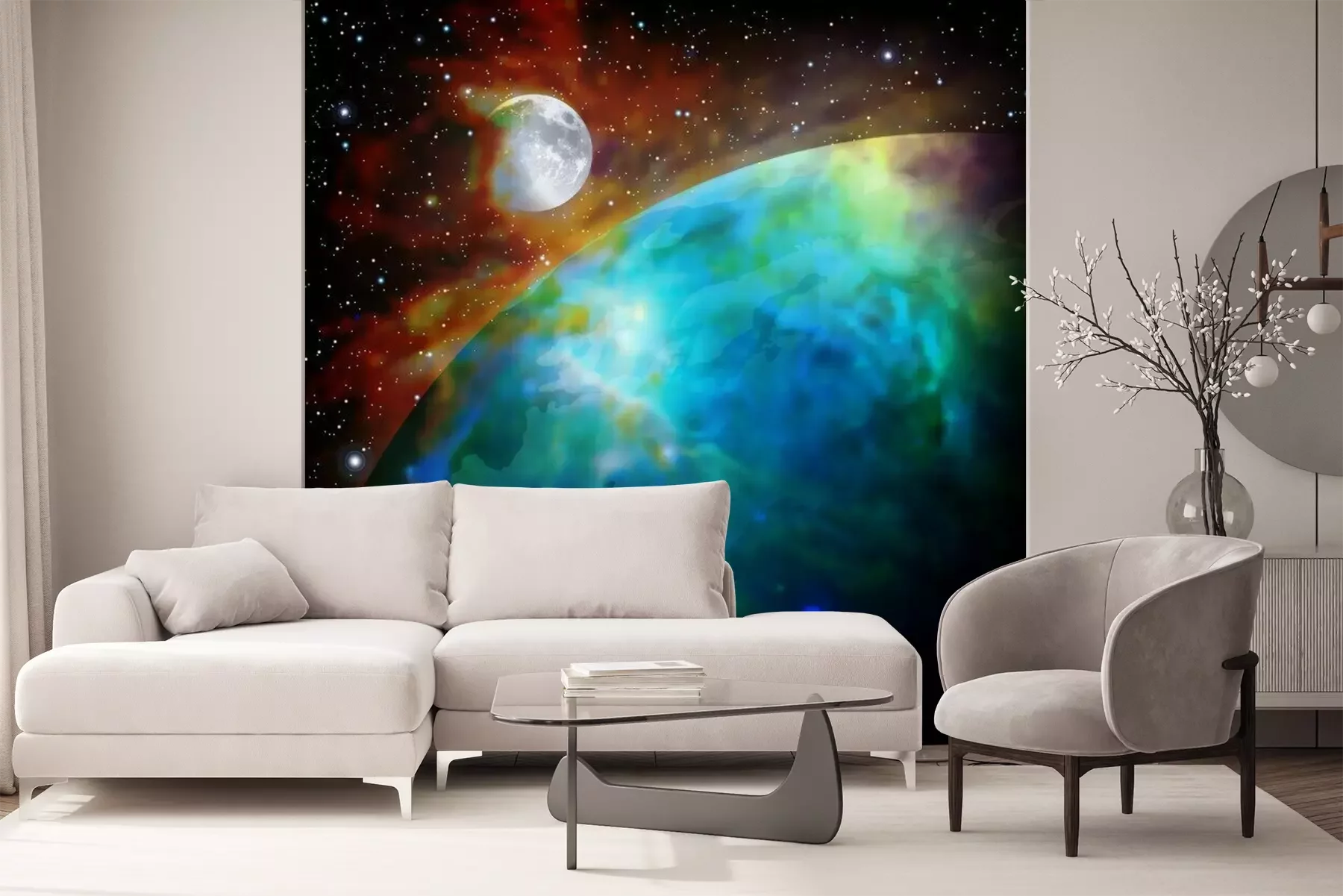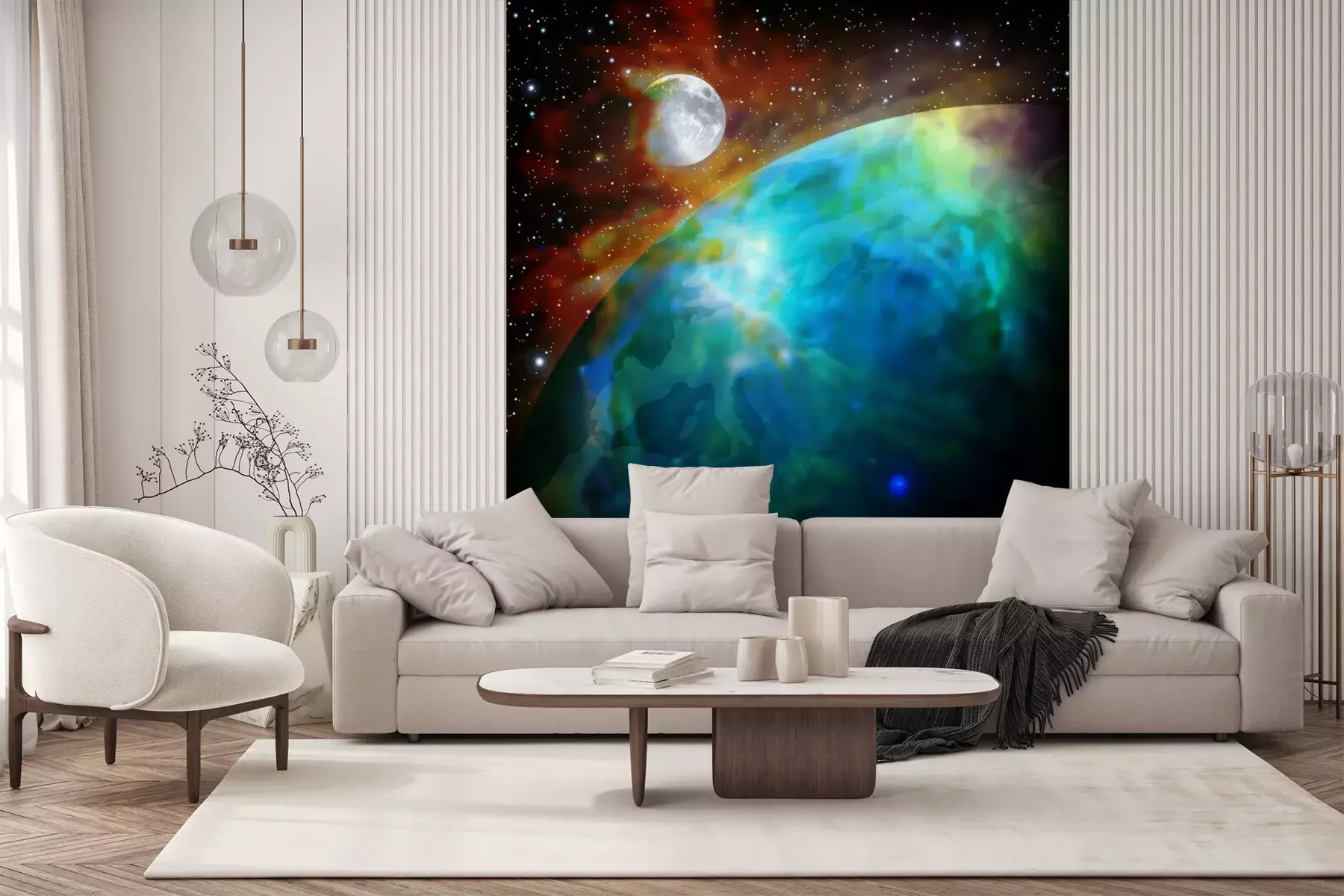 Het materiaal Premium+ is een gestructureerd vinyl op vlies met een gewicht van 255 g/m², dat kleine oneffenheden in de muur effectief camoufleert. De subtiele structuur van fijn zand geeft het oppervlak een exclusieve uitstraling, terwijl de halfmatte afwerking de diepte van de kleuren benadrukt. Het materiaal is dampdoorlatend, waardoor het ook in de keuken en badkamer kan worden gebruikt. De maximale breedte van één baan bedraagt 100 cm – bij grotere afmetingen wordt het fotobehang in meerdere gelijke banen verdeeld. De lijm wordt direct op de muur aangebracht en het behang wordt rand-aan-rand geplakt, wat zorgt voor een esthetisch resultaat zonder zichtbare naden. Het oppervlak kan gemakkelijk worden schoongemaakt door het voorzichtig af te nemen met een vochtige doek.