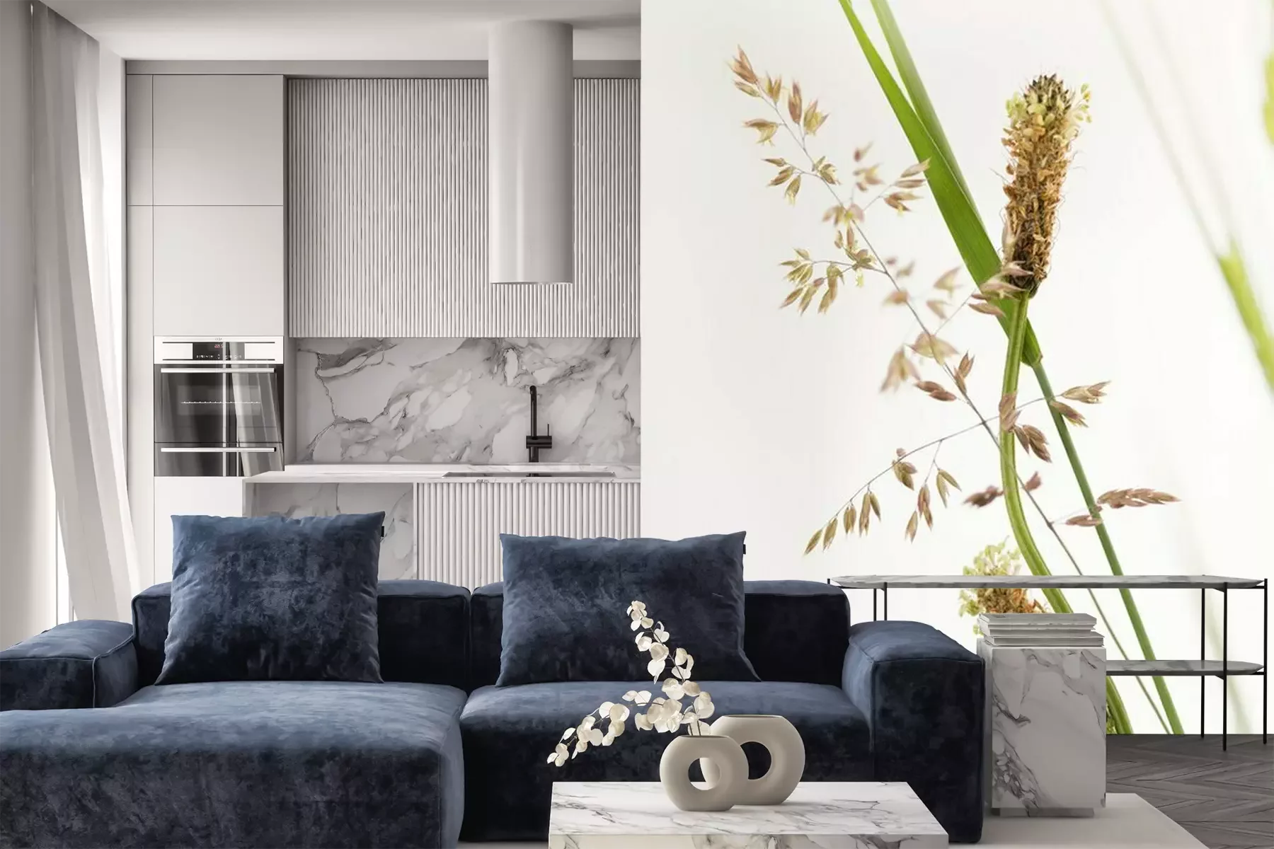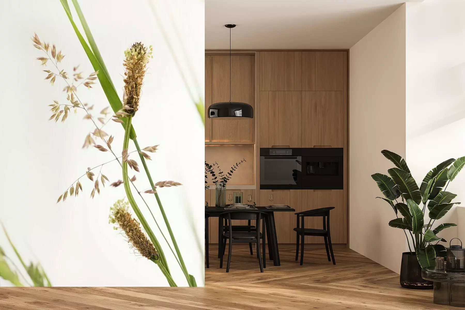 Het materiaal Premium is een glad vinyl op vlies, dat bestand is tegen uitrekken en vervorming. Het is dampdoorlatend – de muren kunnen vrij ademen – waardoor het geschikt is voor gebruik in de keuken en badkamer. Bij vervuiling kan het materiaal worden afgenomen met een vochtige doek. De maximale breedte van één baan bedraagt 95 of 105 cm, afhankelijk van de beschikbaarheid. Montage vindt plaats met de rand-aan-rand methode, wat een esthetisch resultaat zonder zichtbare naden oplevert. Omdat de lijm rechtstreeks op de muur wordt aangebracht, verloopt de installatie van het fotobehang snel en eenvoudig.
