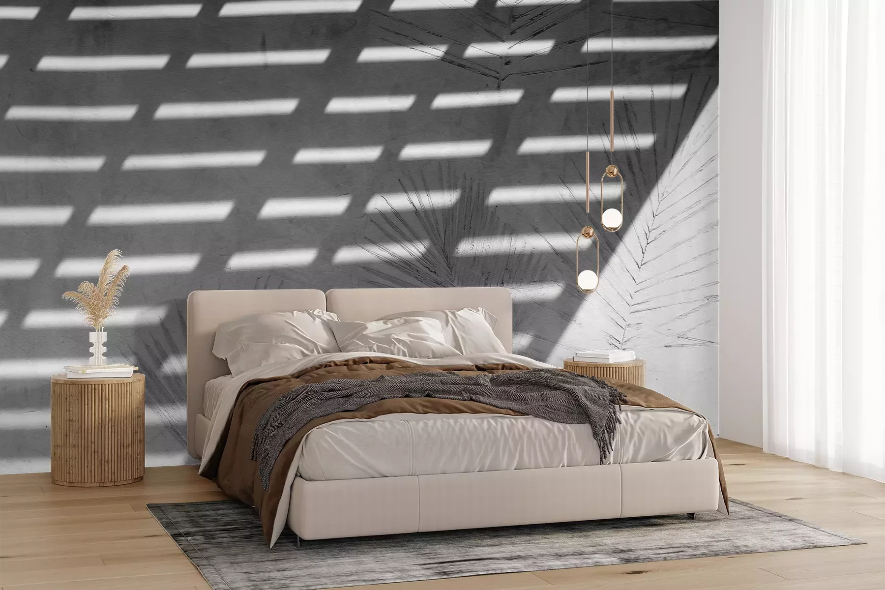 Het materiaal Premium+ is een gestructureerd vinyl op vlies met een gewicht van 255 g/m², dat kleine oneffenheden in de muur effectief camoufleert. De subtiele structuur van fijn zand geeft het oppervlak een exclusieve uitstraling, terwijl de halfmatte afwerking de diepte van de kleuren benadrukt. Het materiaal is dampdoorlatend, waardoor het ook in de keuken en badkamer kan worden gebruikt. De maximale breedte van één baan bedraagt 100 cm – bij grotere afmetingen wordt het fotobehang in meerdere gelijke banen verdeeld. De lijm wordt direct op de muur aangebracht en het behang wordt rand-aan-rand geplakt, wat zorgt voor een esthetisch resultaat zonder zichtbare naden. Het oppervlak kan gemakkelijk worden schoongemaakt door het voorzichtig af te nemen met een vochtige doek.