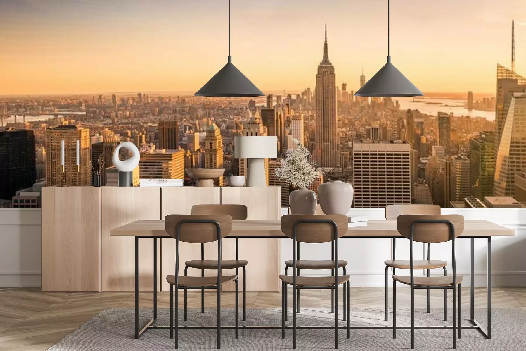 Het materiaal Premium+ is een gestructureerd vinyl op vlies met een gewicht van 255 g/m², dat kleine oneffenheden in de muur effectief camoufleert. De subtiele structuur van fijn zand geeft het oppervlak een exclusieve uitstraling, terwijl de halfmatte afwerking de diepte van de kleuren benadrukt. Het materiaal is dampdoorlatend, waardoor het ook in de keuken en badkamer kan worden gebruikt. De maximale breedte van één baan bedraagt 100 cm – bij grotere afmetingen wordt het fotobehang in meerdere gelijke banen verdeeld. De lijm wordt direct op de muur aangebracht en het behang wordt rand-aan-rand geplakt, wat zorgt voor een esthetisch resultaat zonder zichtbare naden. Het oppervlak kan gemakkelijk worden schoongemaakt door het voorzichtig af te nemen met een vochtige doek.