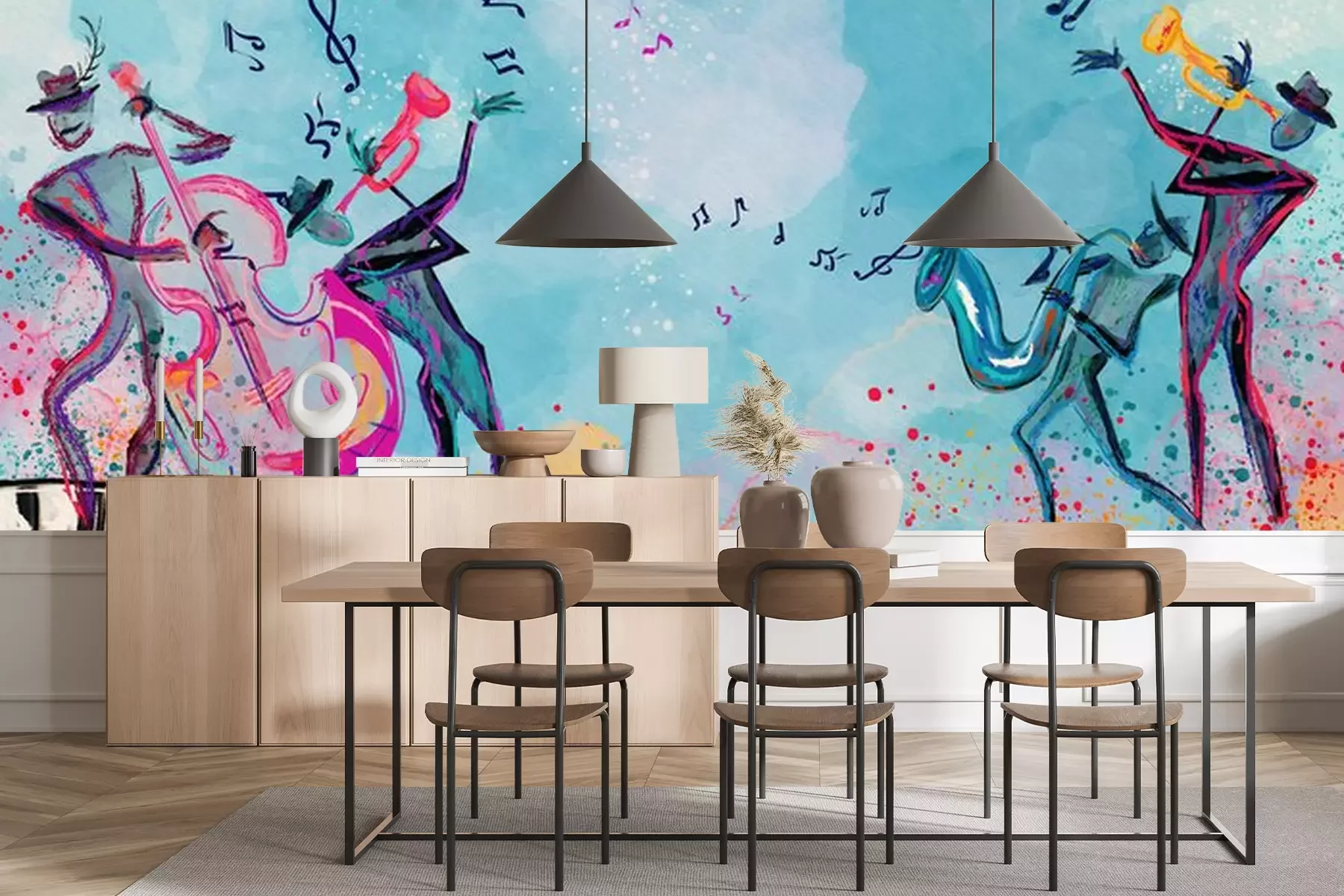 Fotobehang De wereld van de muziek geschilderd in aquarel