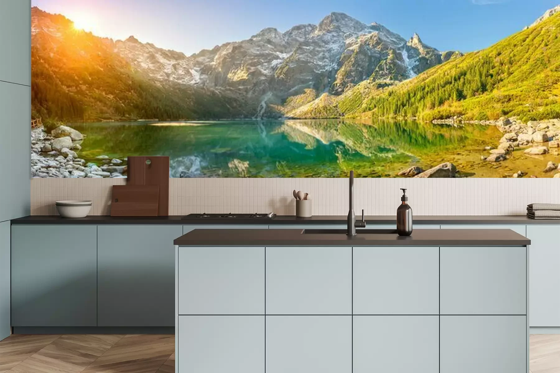 Het materiaal Premium is een glad vinyl op vlies, dat bestand is tegen uitrekken en vervorming. Het is dampdoorlatend – de muren kunnen vrij ademen – waardoor het geschikt is voor gebruik in de keuken en badkamer. Bij vervuiling kan het materiaal worden afgenomen met een vochtige doek. De maximale breedte van één baan bedraagt 95 of 105 cm, afhankelijk van de beschikbaarheid. Montage vindt plaats met de rand-aan-rand methode, wat een esthetisch resultaat zonder zichtbare naden oplevert. Omdat de lijm rechtstreeks op de muur wordt aangebracht, verloopt de installatie van het fotobehang snel en eenvoudig.