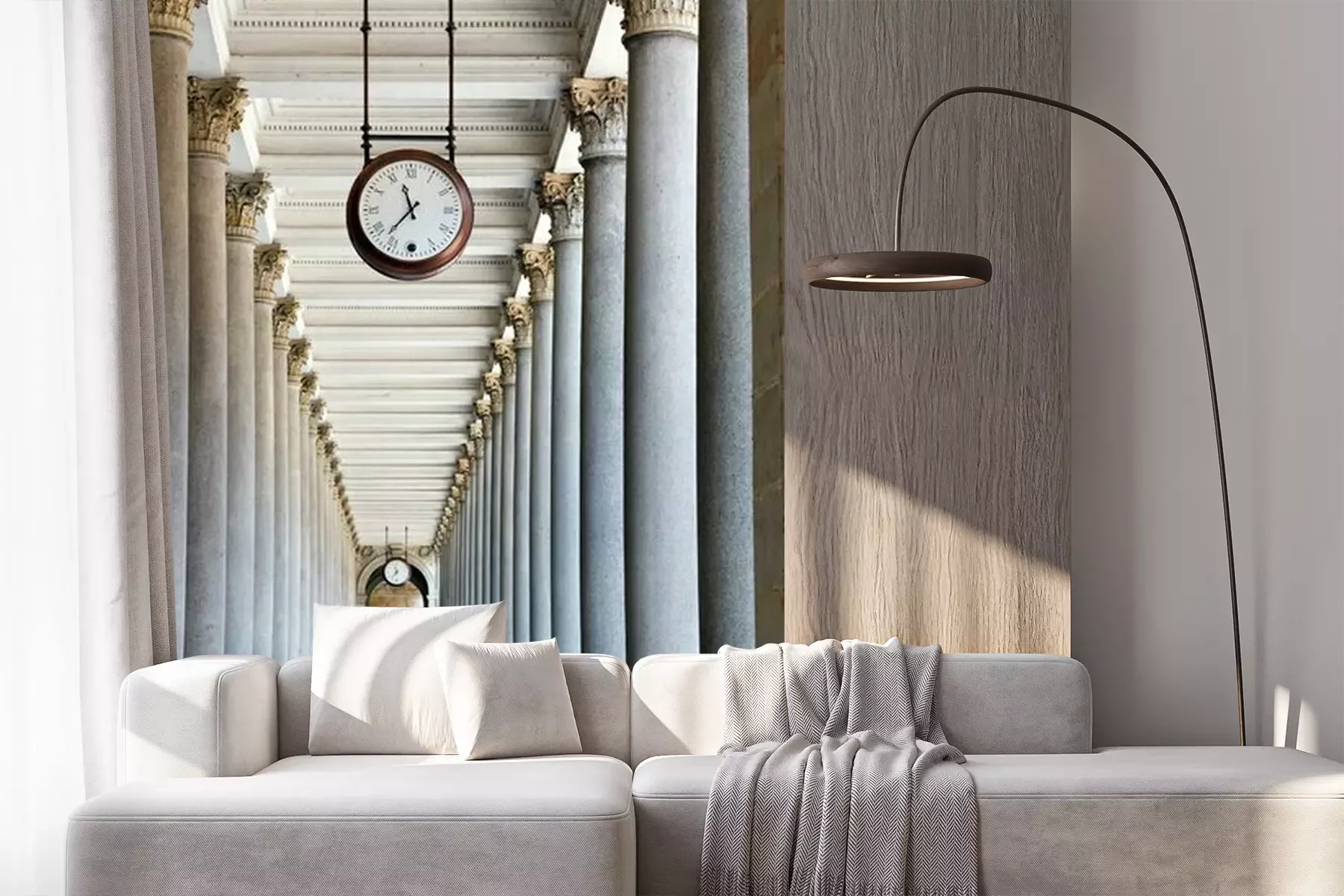 Het materiaal Premium+ is een gestructureerd vinyl op vlies met een gewicht van 255 g/m², dat kleine oneffenheden in de muur effectief camoufleert. De subtiele structuur van fijn zand geeft het oppervlak een exclusieve uitstraling, terwijl de halfmatte afwerking de diepte van de kleuren benadrukt. Het materiaal is dampdoorlatend, waardoor het ook in de keuken en badkamer kan worden gebruikt. De maximale breedte van één baan bedraagt 100 cm – bij grotere afmetingen wordt het fotobehang in meerdere gelijke banen verdeeld. De lijm wordt direct op de muur aangebracht en het behang wordt rand-aan-rand geplakt, wat zorgt voor een esthetisch resultaat zonder zichtbare naden. Het oppervlak kan gemakkelijk worden schoongemaakt door het voorzichtig af te nemen met een vochtige doek.