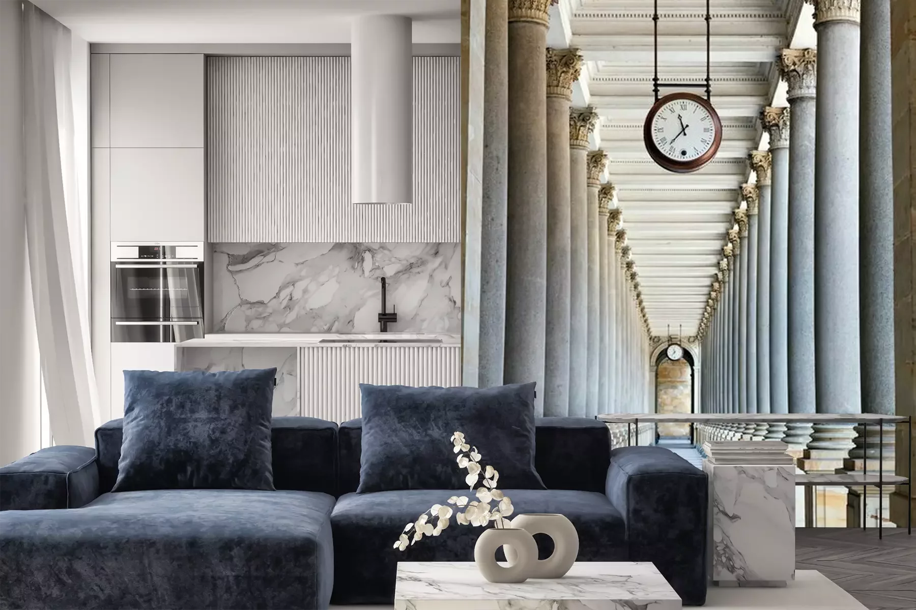 Het materiaal Premium is een glad vinyl op vlies, dat bestand is tegen uitrekken en vervorming. Het is dampdoorlatend – de muren kunnen vrij ademen – waardoor het geschikt is voor gebruik in de keuken en badkamer. Bij vervuiling kan het materiaal worden afgenomen met een vochtige doek. De maximale breedte van één baan bedraagt 95 of 105 cm, afhankelijk van de beschikbaarheid. Montage vindt plaats met de rand-aan-rand methode, wat een esthetisch resultaat zonder zichtbare naden oplevert. Omdat de lijm rechtstreeks op de muur wordt aangebracht, verloopt de installatie van het fotobehang snel en eenvoudig.
