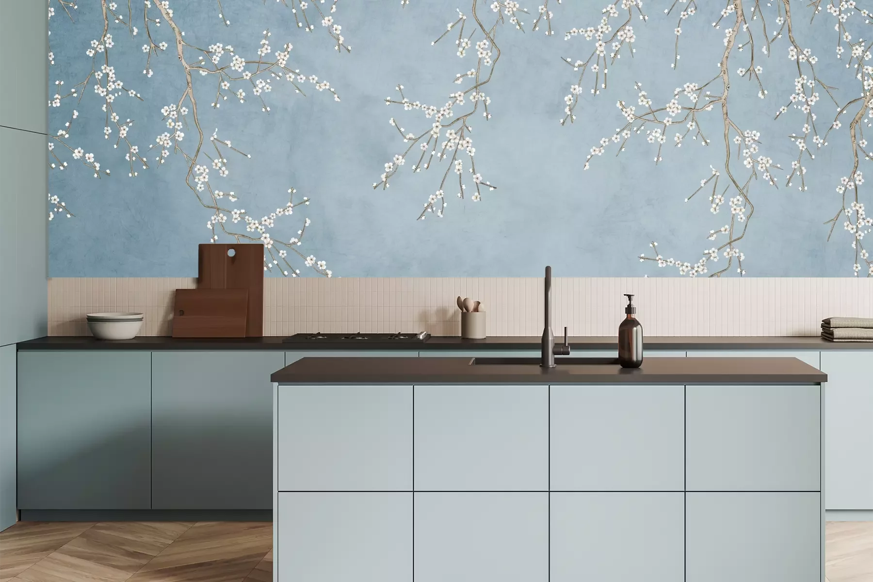 Het materiaal Premium is een glad vinyl op vlies, dat bestand is tegen uitrekken en vervorming. Het is dampdoorlatend – de muren kunnen vrij ademen – waardoor het geschikt is voor gebruik in de keuken en badkamer. Bij vervuiling kan het materiaal worden afgenomen met een vochtige doek. De maximale breedte van één baan bedraagt 95 of 105 cm, afhankelijk van de beschikbaarheid. Montage vindt plaats met de rand-aan-rand methode, wat een esthetisch resultaat zonder zichtbare naden oplevert. Omdat de lijm rechtstreeks op de muur wordt aangebracht, verloopt de installatie van het fotobehang snel en eenvoudig.