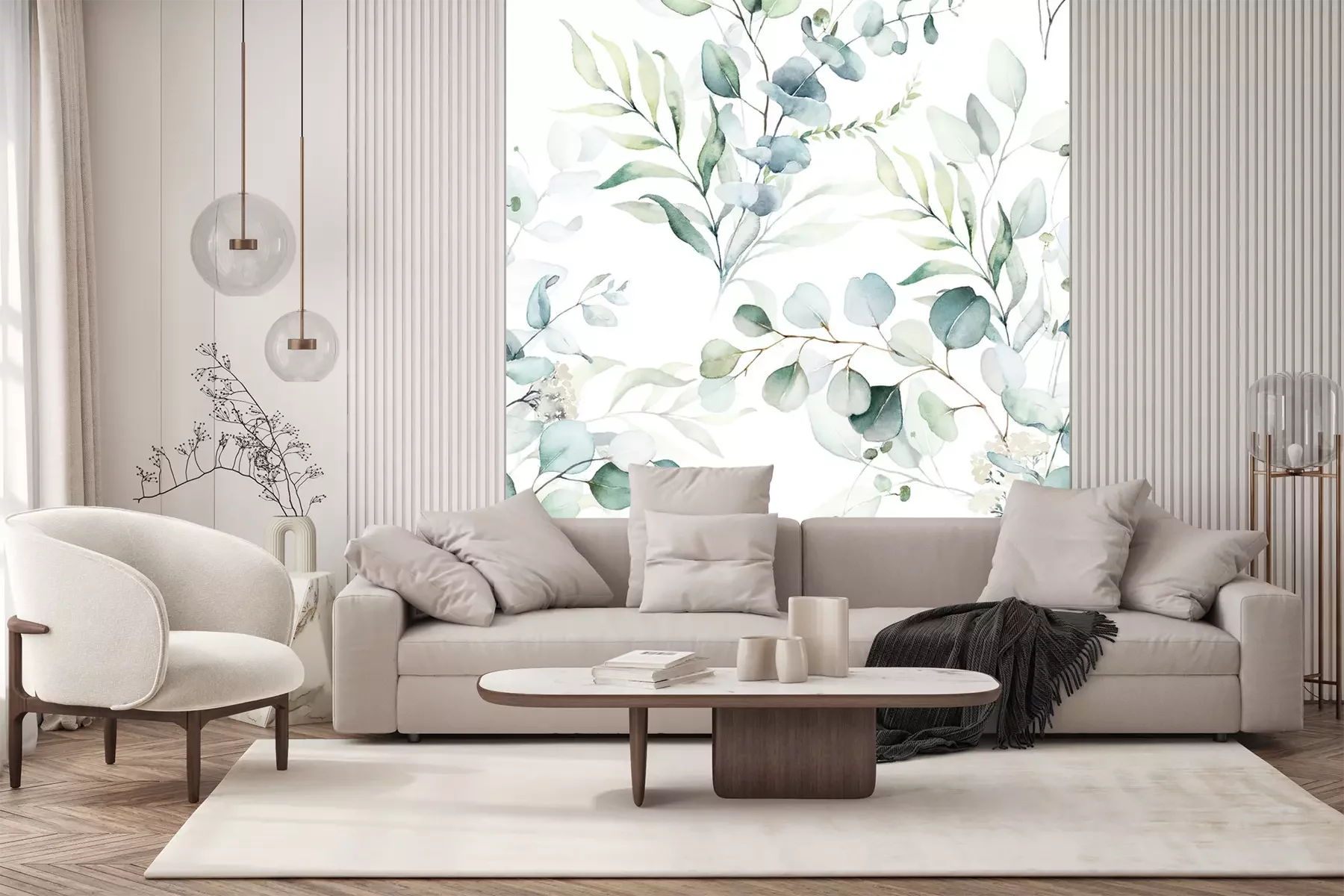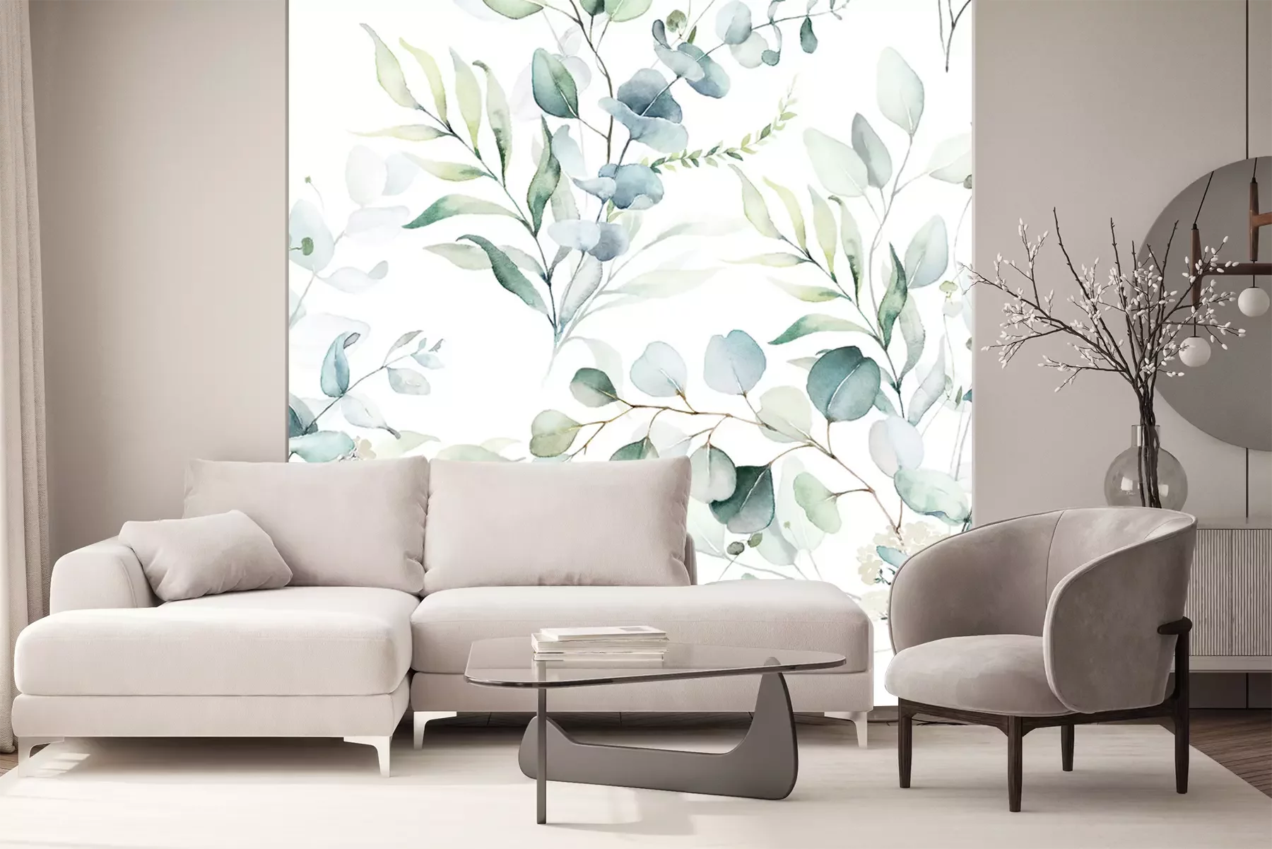 Eucalyptus planten geschilderd in aquarelFotobehang