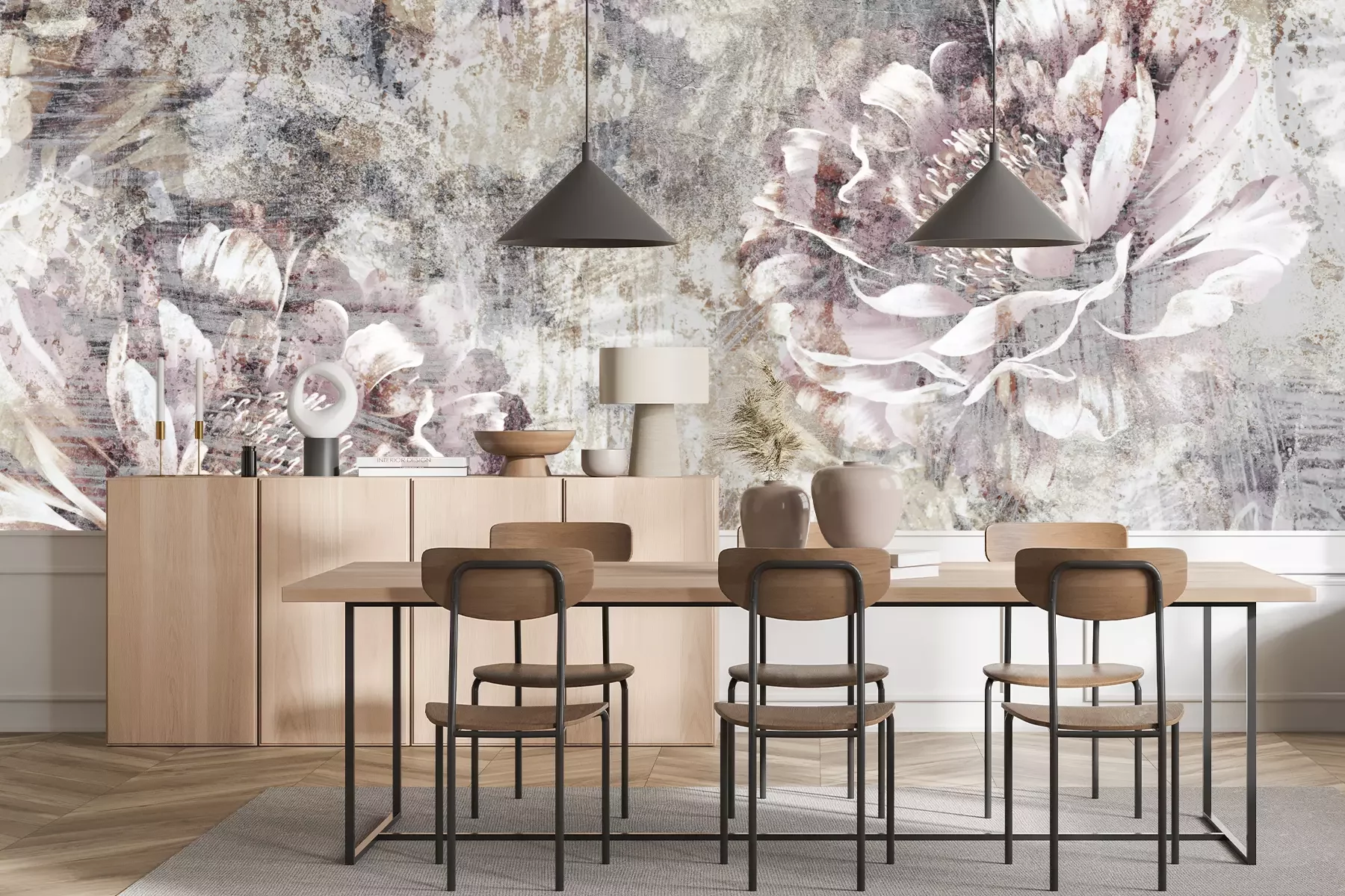 Het materiaal Standard is een hoogwaardig latexmateriaal met een glad, mat oppervlak. Dankzij de HP Latex-printtechnologie zijn de kleuren intens, duurzaam en UV-bestendig, waardoor het patroon jarenlang een onberispelijke uitstraling behoudt. Vervuilde oppervlakken kunnen voorzichtig worden afgeveegd met een droge doek. De maximale breedte van één baan bedraagt 95 cm of 105 cm – afhankelijk van de bestelde fotobehangbreedte. Bij grotere afmetingen wordt het patroon verdeeld over meerdere gelijkmatige banen. Het fotobehang wordt rand-aan-randaangebracht, wat vrijwel onzichtbare naden mogelijk maakt.