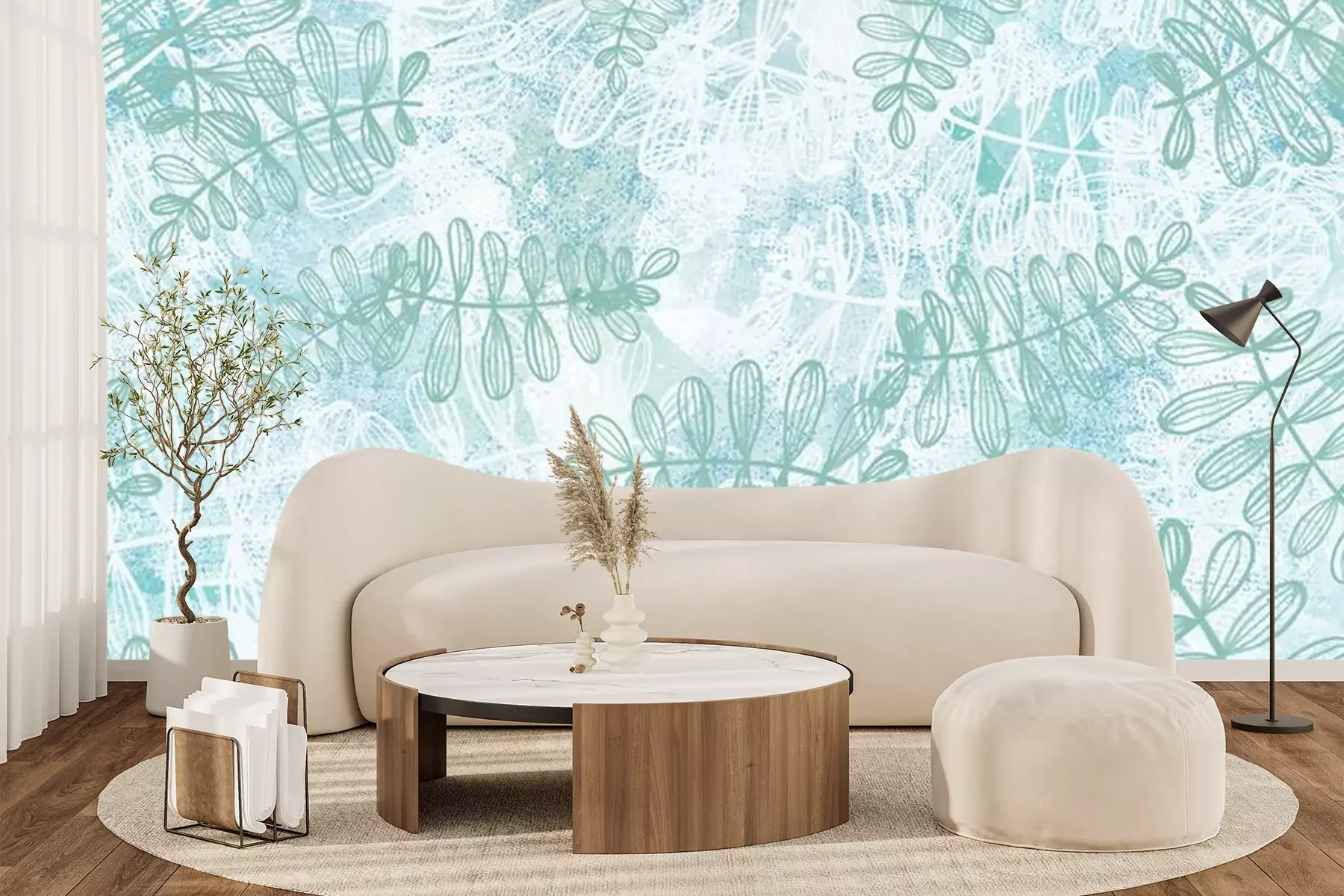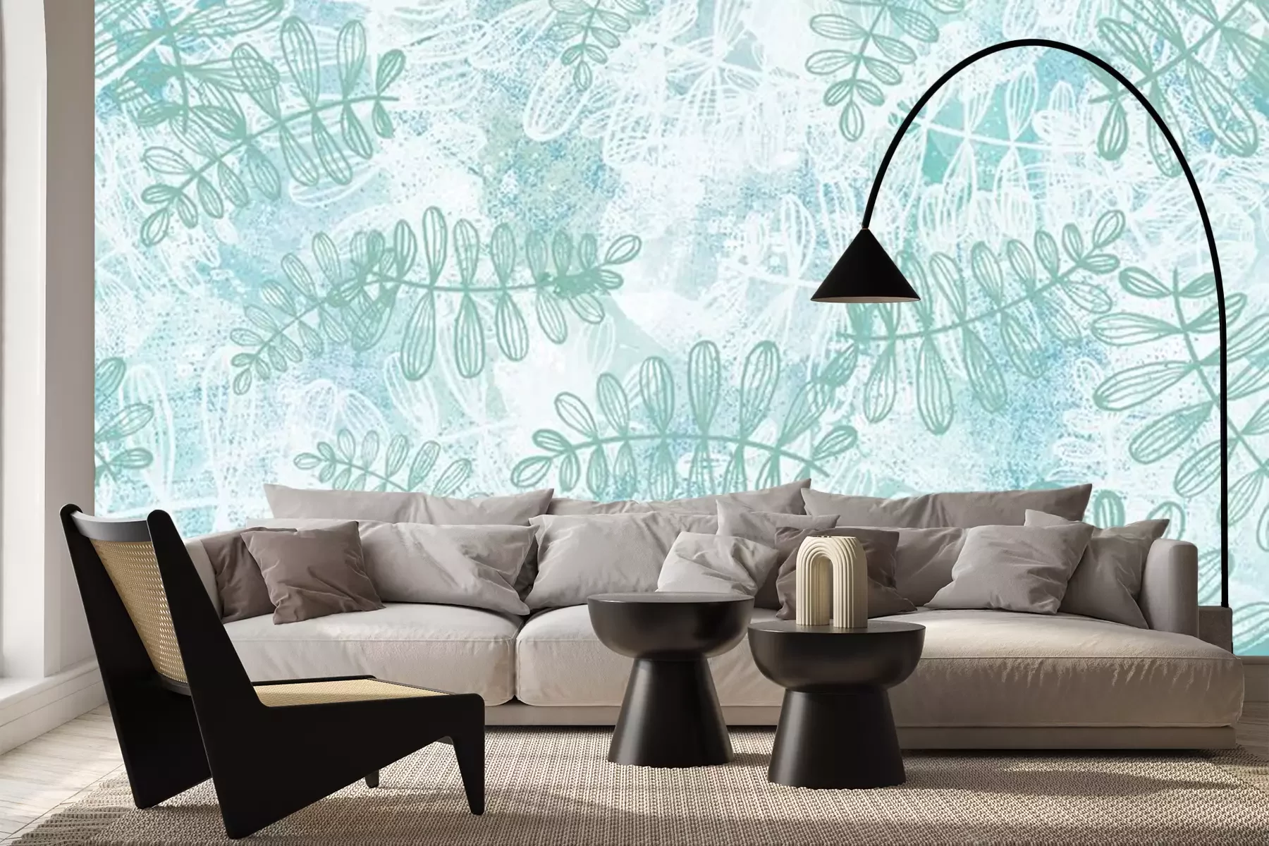 Fotobehang Delicate takjes op een aquarel achtergrond