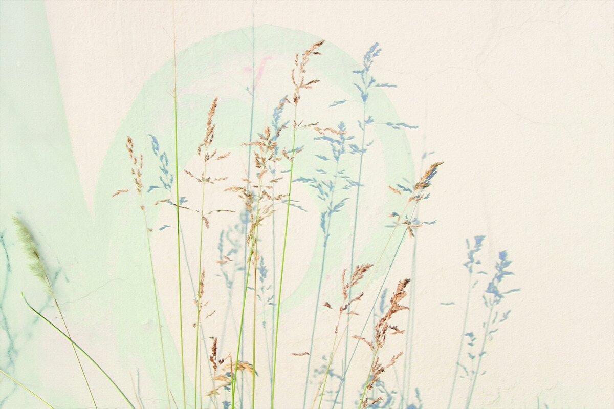 Fotobehang: Delicate veldgrassen tegen een lichte achtergrond