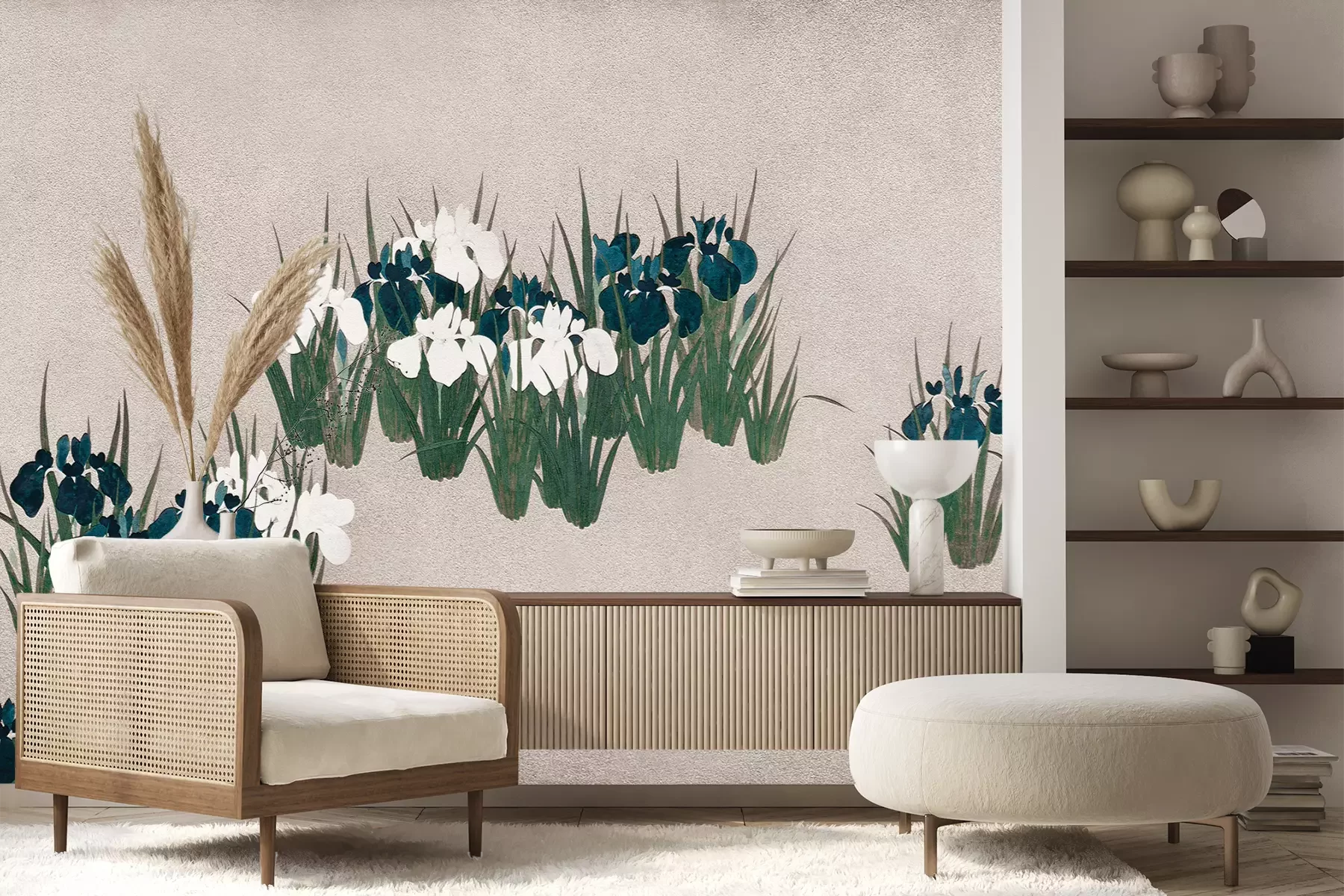 Het materiaal Premium+ is een gestructureerd vinyl op vlies met een gewicht van 255 g/m², dat kleine oneffenheden in de muur effectief camoufleert. De subtiele structuur van fijn zand geeft het oppervlak een exclusieve uitstraling, terwijl de halfmatte afwerking de diepte van de kleuren benadrukt. Het materiaal is dampdoorlatend, waardoor het ook in de keuken en badkamer kan worden gebruikt. De maximale breedte van één baan bedraagt 100 cm – bij grotere afmetingen wordt het fotobehang in meerdere gelijke banen verdeeld. De lijm wordt direct op de muur aangebracht en het behang wordt rand-aan-rand geplakt, wat zorgt voor een esthetisch resultaat zonder zichtbare naden. Het oppervlak kan gemakkelijk worden schoongemaakt door het voorzichtig af te nemen met een vochtige doek.