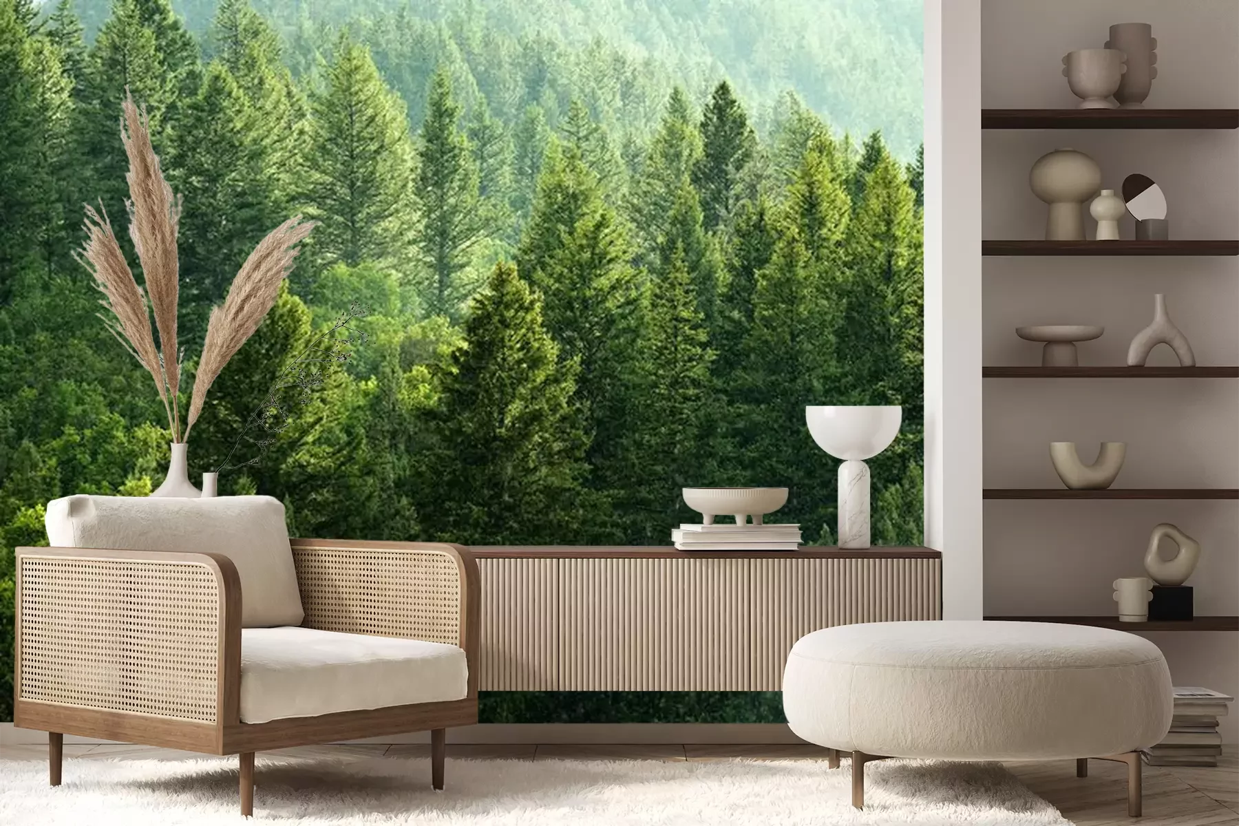 Het materiaal Premium+ is een gestructureerd vinyl op vlies met een gewicht van 255 g/m², dat kleine oneffenheden in de muur effectief camoufleert. De subtiele structuur van fijn zand geeft het oppervlak een exclusieve uitstraling, terwijl de halfmatte afwerking de diepte van de kleuren benadrukt. Het materiaal is dampdoorlatend, waardoor het ook in de keuken en badkamer kan worden gebruikt. De maximale breedte van één baan bedraagt 100 cm – bij grotere afmetingen wordt het fotobehang in meerdere gelijke banen verdeeld. De lijm wordt direct op de muur aangebracht en het behang wordt rand-aan-rand geplakt, wat zorgt voor een esthetisch resultaat zonder zichtbare naden. Het oppervlak kan gemakkelijk worden schoongemaakt door het voorzichtig af te nemen met een vochtige doek.