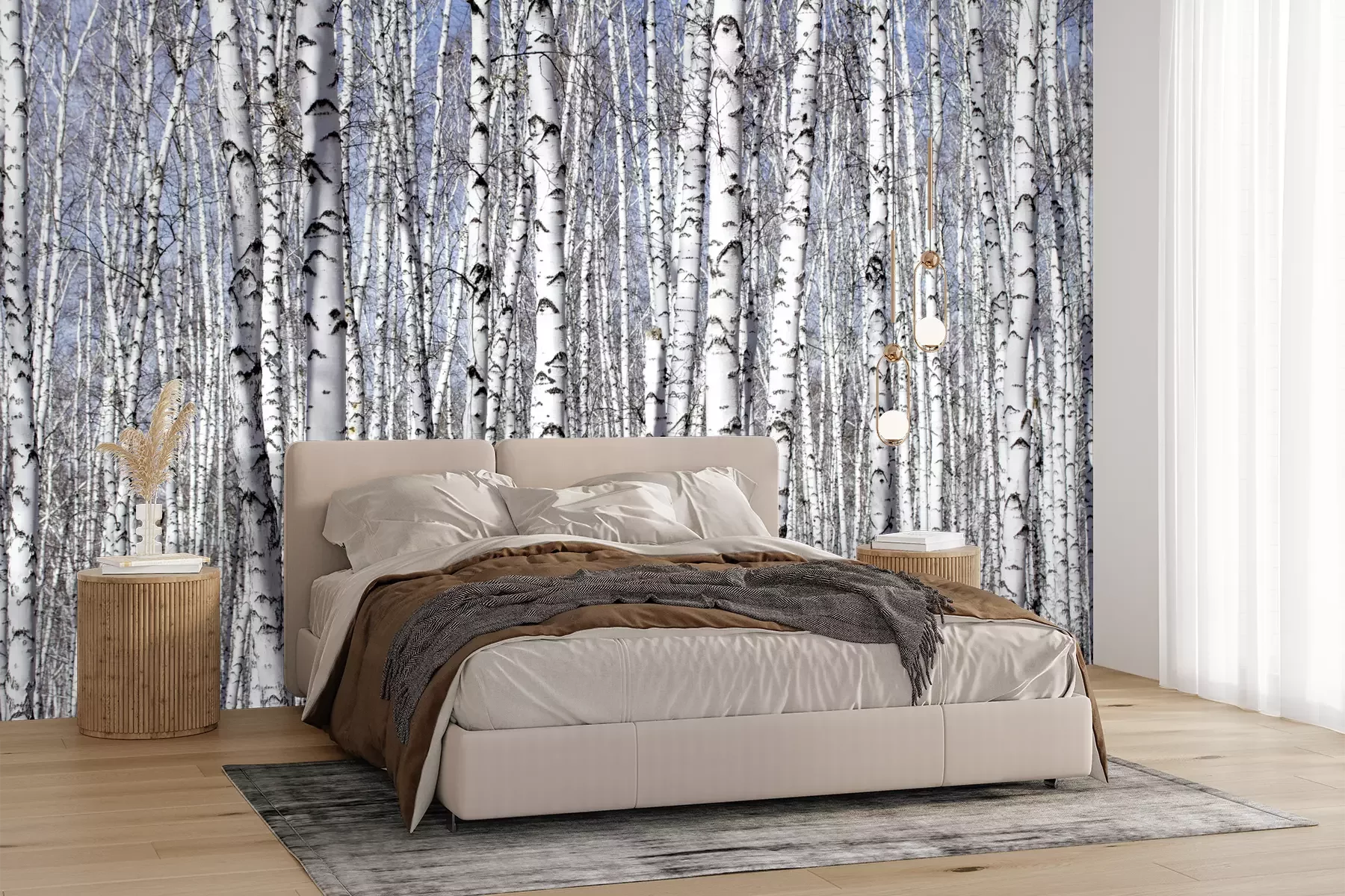 Het materiaal Premium+ is een gestructureerd vinyl op vlies met een gewicht van 255 g/m², dat kleine oneffenheden in de muur effectief camoufleert. De subtiele structuur van fijn zand geeft het oppervlak een exclusieve uitstraling, terwijl de halfmatte afwerking de diepte van de kleuren benadrukt. Het materiaal is dampdoorlatend, waardoor het ook in de keuken en badkamer kan worden gebruikt. De maximale breedte van één baan bedraagt 100 cm – bij grotere afmetingen wordt het fotobehang in meerdere gelijke banen verdeeld. De lijm wordt direct op de muur aangebracht en het behang wordt rand-aan-rand geplakt, wat zorgt voor een esthetisch resultaat zonder zichtbare naden. Het oppervlak kan gemakkelijk worden schoongemaakt door het voorzichtig af te nemen met een vochtige doek.