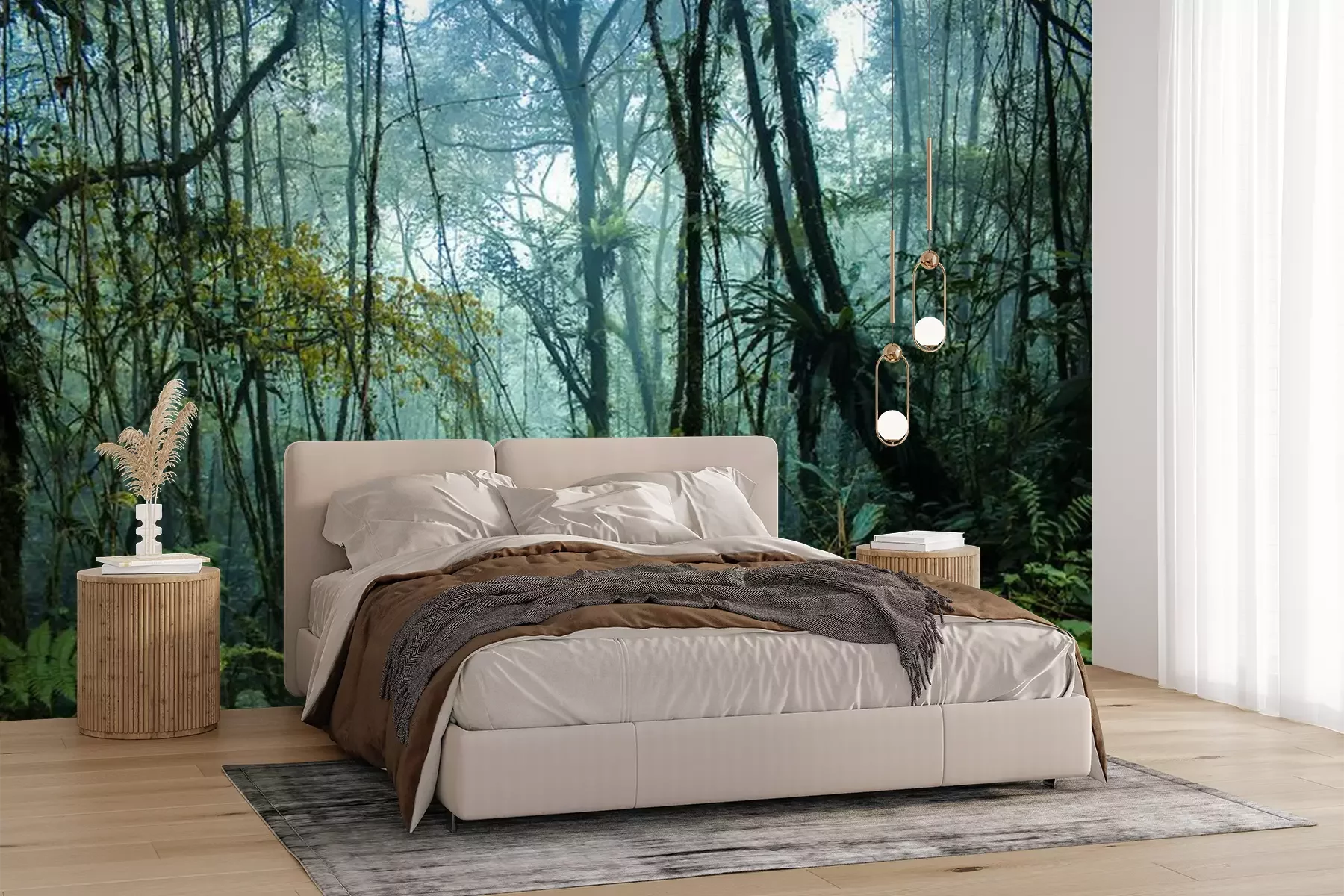 Het materiaal Premium+ is een gestructureerd vinyl op vlies met een gewicht van 255 g/m², dat kleine oneffenheden in de muur effectief camoufleert. De subtiele structuur van fijn zand geeft het oppervlak een exclusieve uitstraling, terwijl de halfmatte afwerking de diepte van de kleuren benadrukt. Het materiaal is dampdoorlatend, waardoor het ook in de keuken en badkamer kan worden gebruikt. De maximale breedte van één baan bedraagt 100 cm – bij grotere afmetingen wordt het fotobehang in meerdere gelijke banen verdeeld. De lijm wordt direct op de muur aangebracht en het behang wordt rand-aan-rand geplakt, wat zorgt voor een esthetisch resultaat zonder zichtbare naden. Het oppervlak kan gemakkelijk worden schoongemaakt door het voorzichtig af te nemen met een vochtige doek.