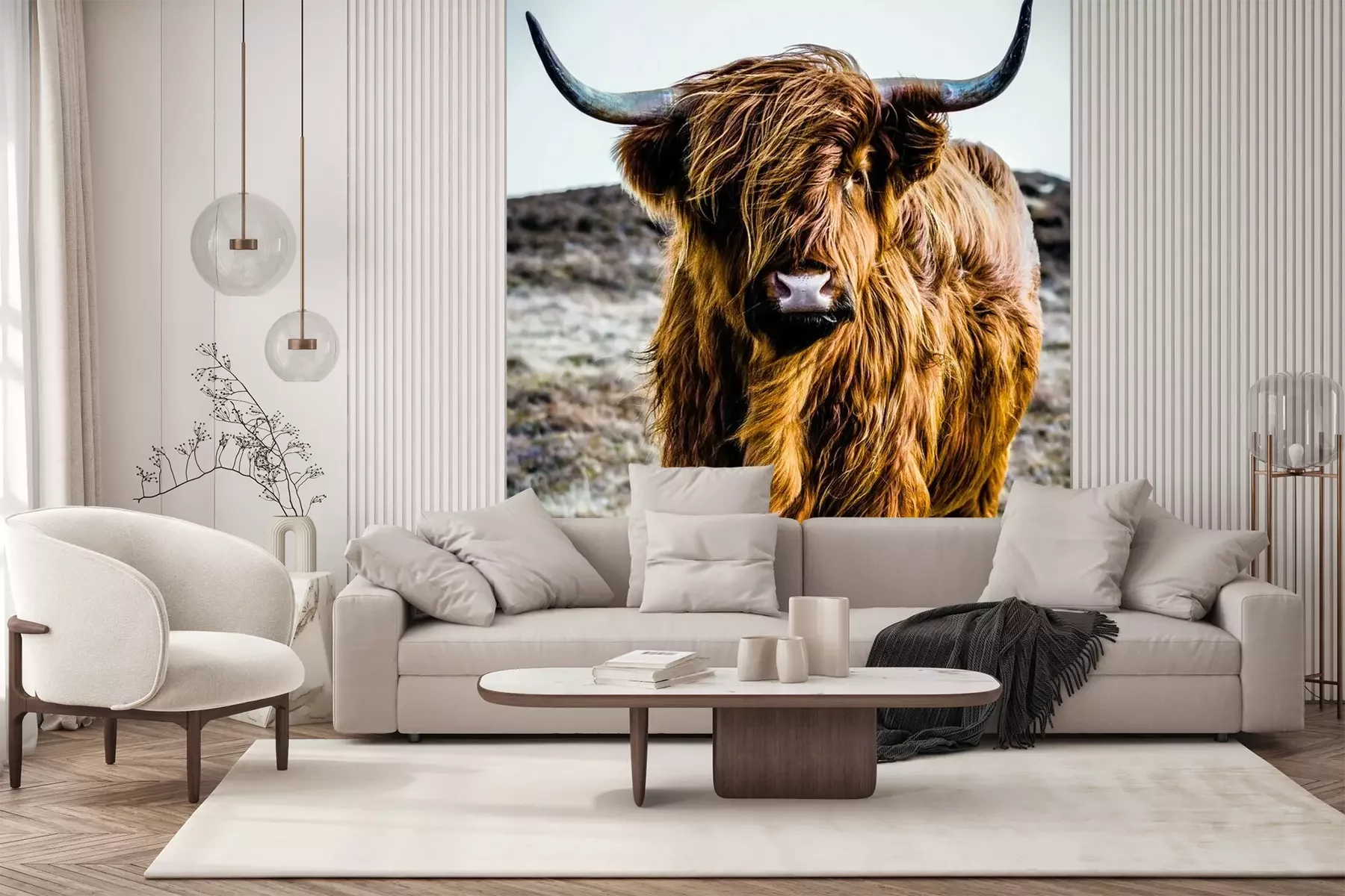 Het materiaal Standard is een hoogwaardig latexmateriaal met een glad, mat oppervlak. Dankzij de HP Latex-printtechnologie zijn de kleuren intens, duurzaam en UV-bestendig, waardoor het patroon jarenlang een onberispelijke uitstraling behoudt. Vervuilde oppervlakken kunnen voorzichtig worden afgeveegd met een droge doek. De maximale breedte van één baan bedraagt 95 cm of 105 cm – afhankelijk van de bestelde fotobehangbreedte. Bij grotere afmetingen wordt het patroon verdeeld over meerdere gelijkmatige banen. Het fotobehang wordt rand-aan-randaangebracht, wat vrijwel onzichtbare naden mogelijk maakt.