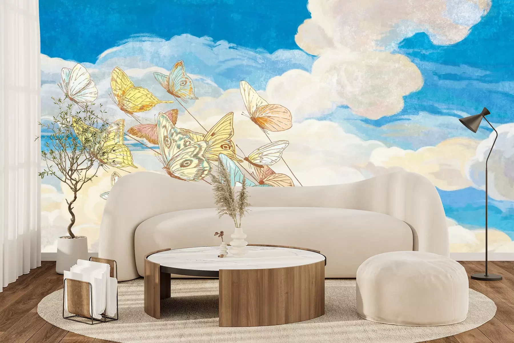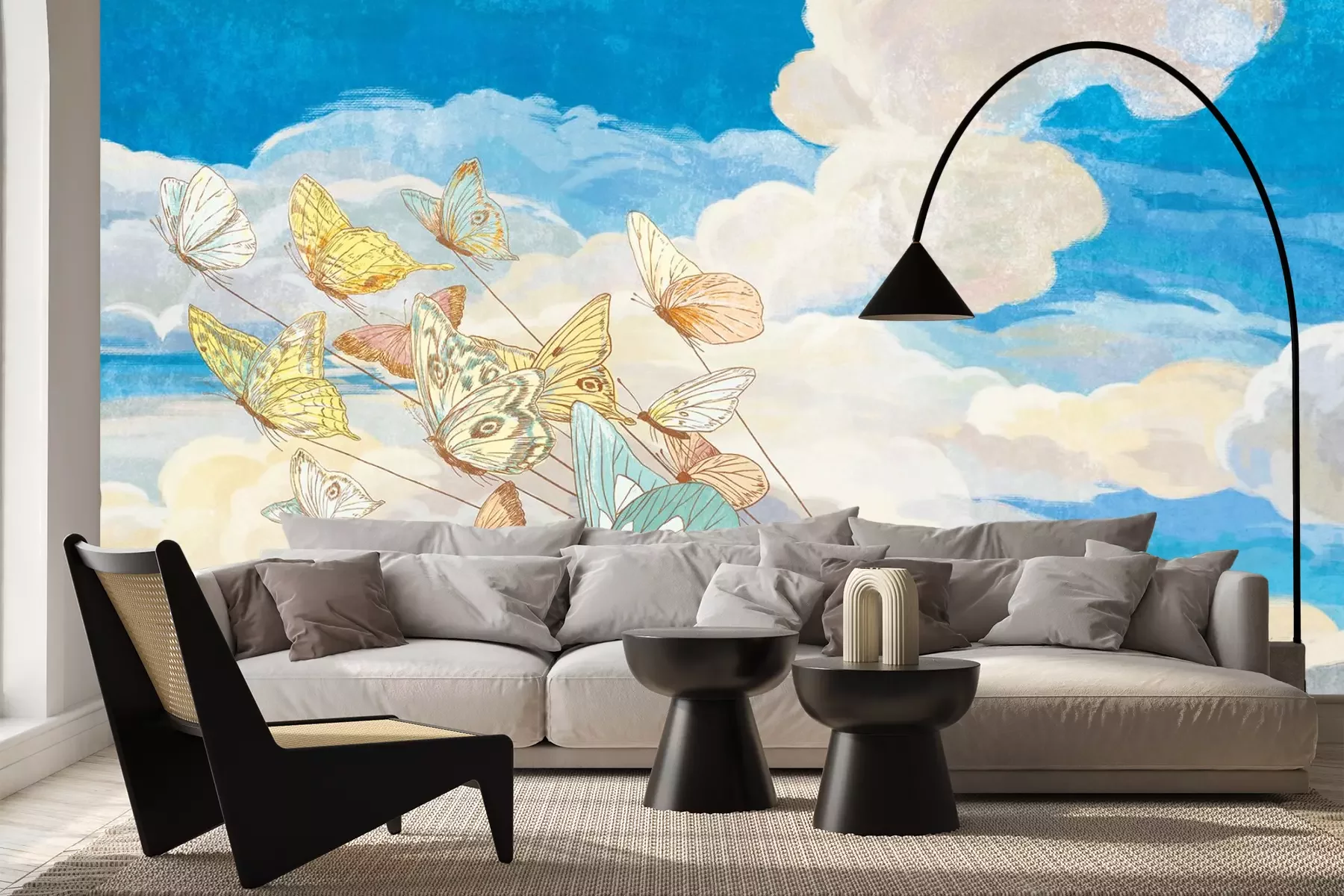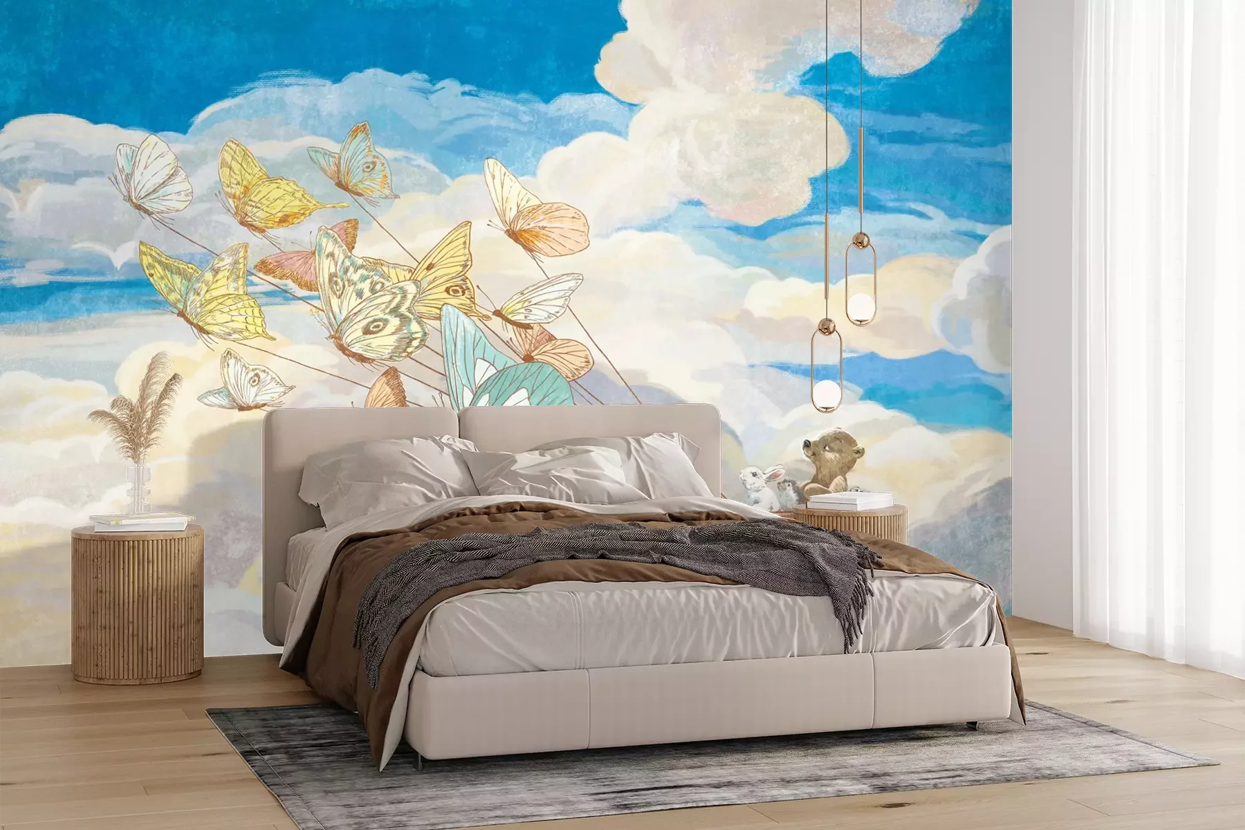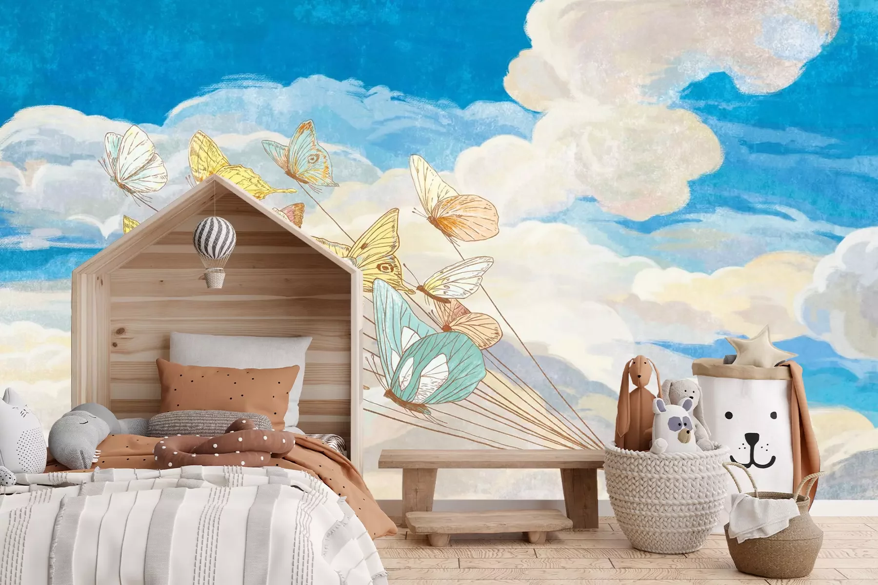 Dieren en vlinders tegen de lucht - kinderpatroon