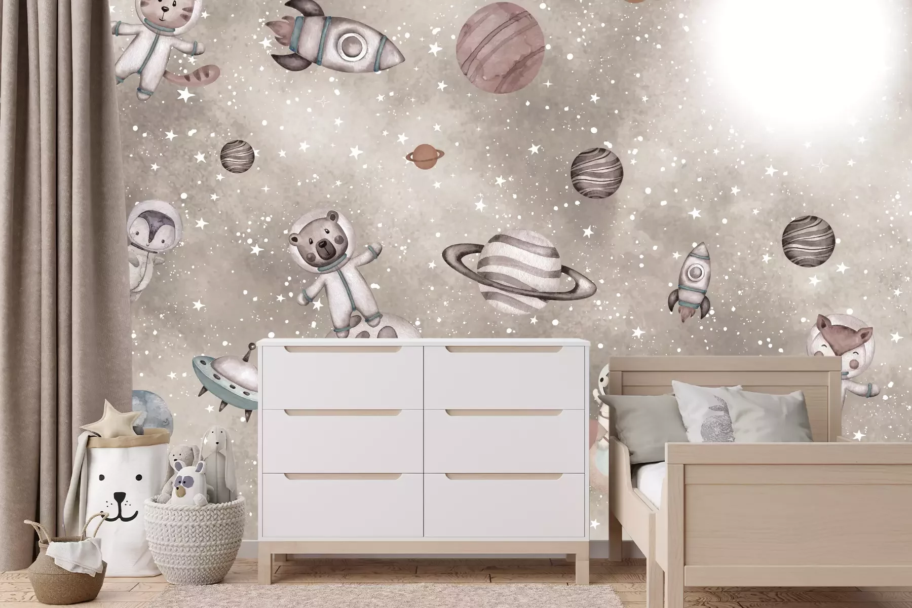 Het materiaal Standard is een hoogwaardig latexmateriaal met een glad, mat oppervlak. Dankzij de HP Latex-printtechnologie zijn de kleuren intens, duurzaam en UV-bestendig, waardoor het patroon jarenlang een onberispelijke uitstraling behoudt. Vervuilde oppervlakken kunnen voorzichtig worden afgeveegd met een droge doek. De maximale breedte van één baan bedraagt 95 cm of 105 cm – afhankelijk van de bestelde fotobehangbreedte. Bij grotere afmetingen wordt het patroon verdeeld over meerdere gelijkmatige banen. Het fotobehang wordt rand-aan-randaangebracht, wat vrijwel onzichtbare naden mogelijk maakt.