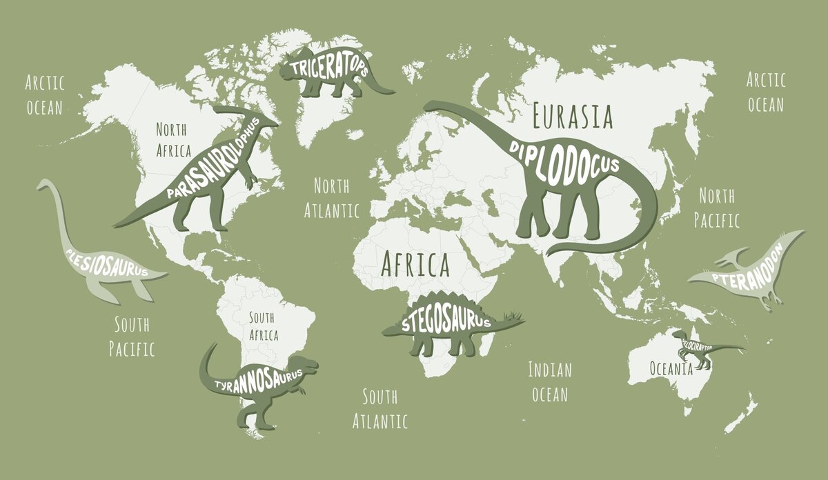 Fotobehang: Dinosaurussen op de wereldkaartpatroon voor kinderen