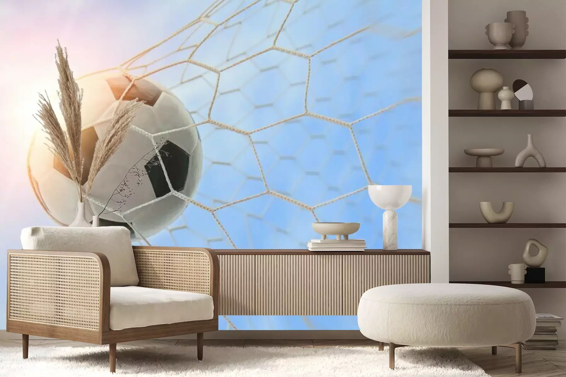 Het materiaal Premium+ is een gestructureerd vinyl op vlies met een gewicht van 255 g/m², dat kleine oneffenheden in de muur effectief camoufleert. De subtiele structuur van fijn zand geeft het oppervlak een exclusieve uitstraling, terwijl de halfmatte afwerking de diepte van de kleuren benadrukt. Het materiaal is dampdoorlatend, waardoor het ook in de keuken en badkamer kan worden gebruikt. De maximale breedte van één baan bedraagt 100 cm – bij grotere afmetingen wordt het fotobehang in meerdere gelijke banen verdeeld. De lijm wordt direct op de muur aangebracht en het behang wordt rand-aan-rand geplakt, wat zorgt voor een esthetisch resultaat zonder zichtbare naden. Het oppervlak kan gemakkelijk worden schoongemaakt door het voorzichtig af te nemen met een vochtige doek.