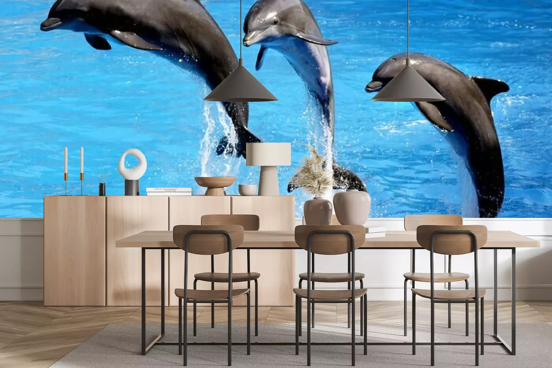 Het materiaal Premium+ is een gestructureerd vinyl op vlies met een gewicht van 255 g/m², dat kleine oneffenheden in de muur effectief camoufleert. De subtiele structuur van fijn zand geeft het oppervlak een exclusieve uitstraling, terwijl de halfmatte afwerking de diepte van de kleuren benadrukt. Het materiaal is dampdoorlatend, waardoor het ook in de keuken en badkamer kan worden gebruikt. De maximale breedte van één baan bedraagt 100 cm – bij grotere afmetingen wordt het fotobehang in meerdere gelijke banen verdeeld. De lijm wordt direct op de muur aangebracht en het behang wordt rand-aan-rand geplakt, wat zorgt voor een esthetisch resultaat zonder zichtbare naden. Het oppervlak kan gemakkelijk worden schoongemaakt door het voorzichtig af te nemen met een vochtige doek.
