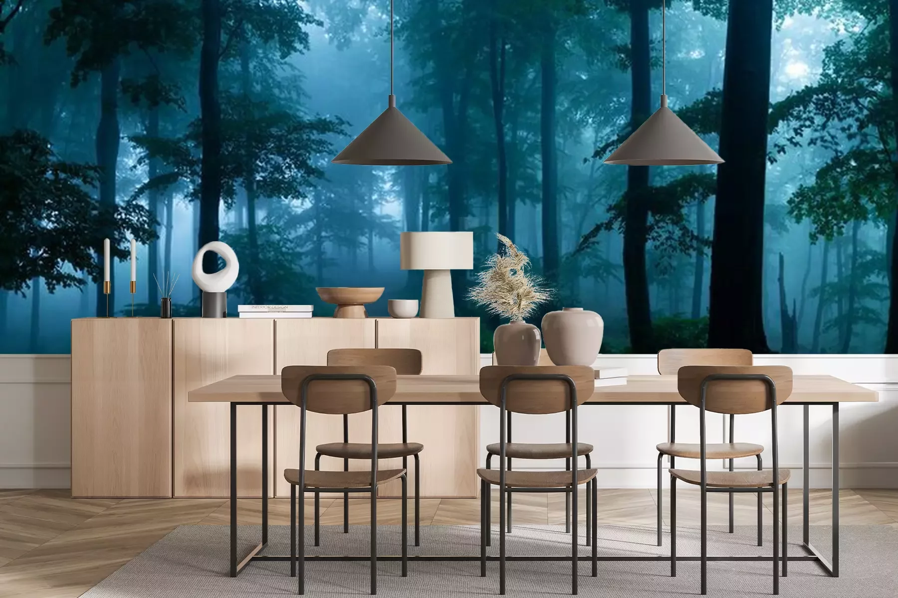Fotobehang Donker bos in blauwe tinten