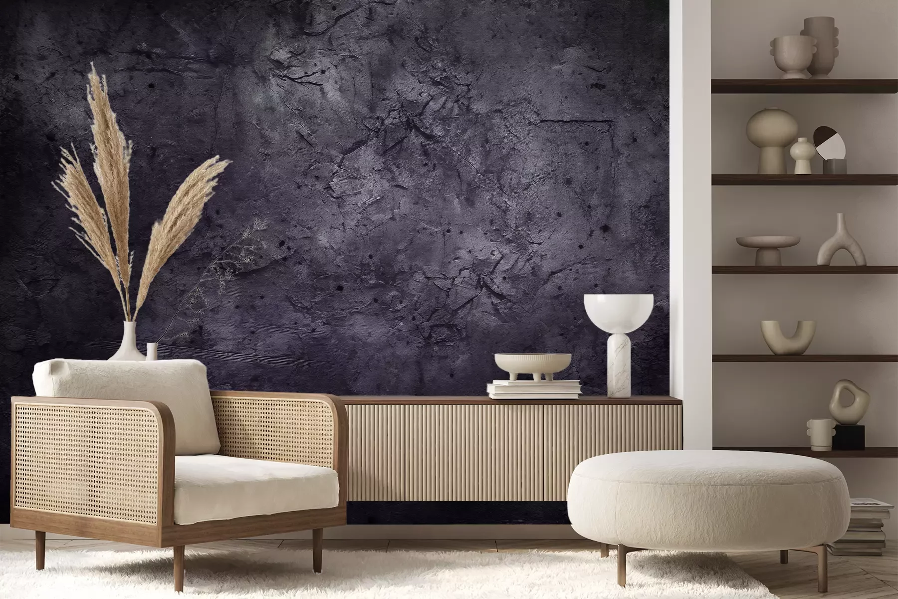 Het materiaal Premium+ is een gestructureerd vinyl op vlies met een gewicht van 255 g/m², dat kleine oneffenheden in de muur effectief camoufleert. De subtiele structuur van fijn zand geeft het oppervlak een exclusieve uitstraling, terwijl de halfmatte afwerking de diepte van de kleuren benadrukt. Het materiaal is dampdoorlatend, waardoor het ook in de keuken en badkamer kan worden gebruikt. De maximale breedte van één baan bedraagt 100 cm – bij grotere afmetingen wordt het fotobehang in meerdere gelijke banen verdeeld. De lijm wordt direct op de muur aangebracht en het behang wordt rand-aan-rand geplakt, wat zorgt voor een esthetisch resultaat zonder zichtbare naden. Het oppervlak kan gemakkelijk worden schoongemaakt door het voorzichtig af te nemen met een vochtige doek.