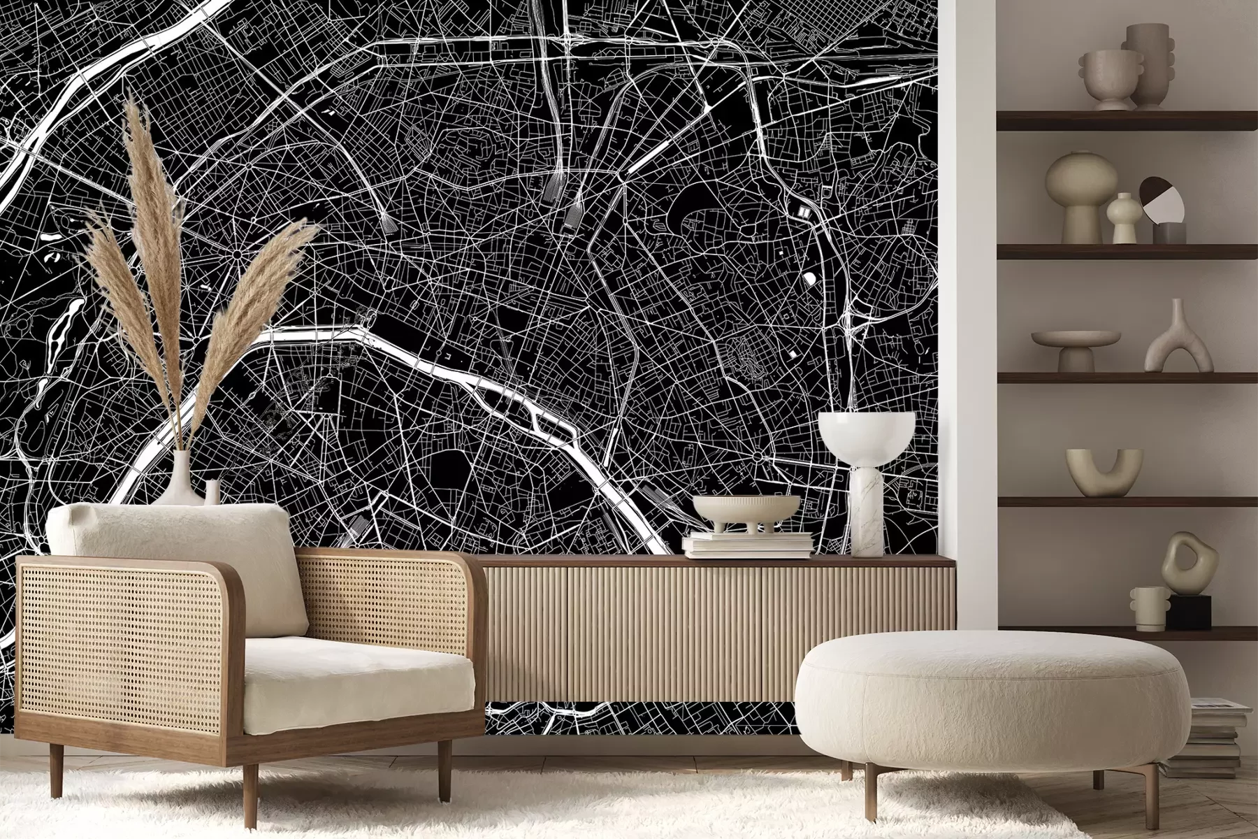 Het materiaal Premium+ is een gestructureerd vinyl op vlies met een gewicht van 255 g/m², dat kleine oneffenheden in de muur effectief camoufleert. De subtiele structuur van fijn zand geeft het oppervlak een exclusieve uitstraling, terwijl de halfmatte afwerking de diepte van de kleuren benadrukt. Het materiaal is dampdoorlatend, waardoor het ook in de keuken en badkamer kan worden gebruikt. De maximale breedte van één baan bedraagt 100 cm – bij grotere afmetingen wordt het fotobehang in meerdere gelijke banen verdeeld. De lijm wordt direct op de muur aangebracht en het behang wordt rand-aan-rand geplakt, wat zorgt voor een esthetisch resultaat zonder zichtbare naden. Het oppervlak kan gemakkelijk worden schoongemaakt door het voorzichtig af te nemen met een vochtige doek.