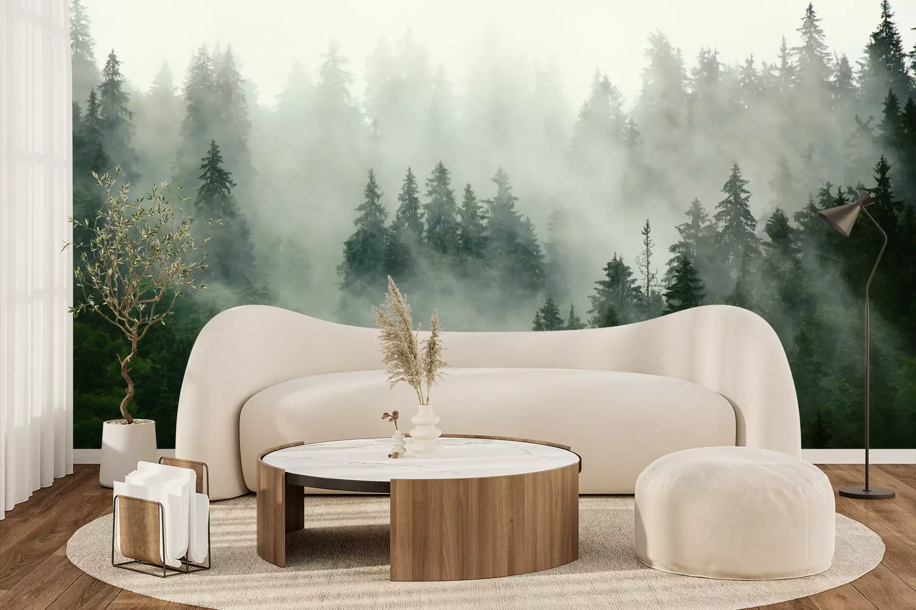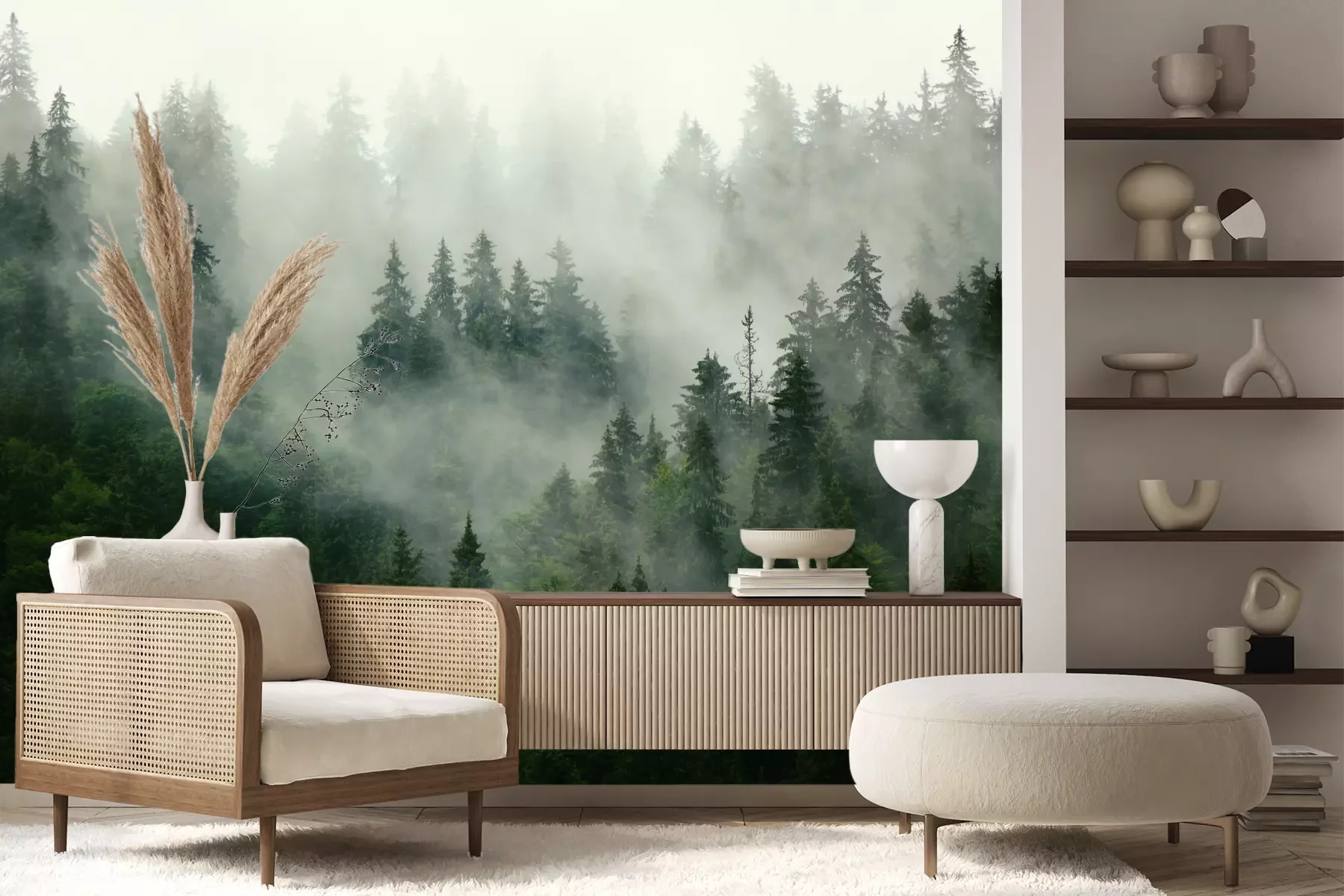 Het materiaal Premium+ is een gestructureerd vinyl op vlies met een gewicht van 255 g/m², dat kleine oneffenheden in de muur effectief camoufleert. De subtiele structuur van fijn zand geeft het oppervlak een exclusieve uitstraling, terwijl de halfmatte afwerking de diepte van de kleuren benadrukt. Het materiaal is dampdoorlatend, waardoor het ook in de keuken en badkamer kan worden gebruikt. De maximale breedte van één baan bedraagt 100 cm – bij grotere afmetingen wordt het fotobehang in meerdere gelijke banen verdeeld. De lijm wordt direct op de muur aangebracht en het behang wordt rand-aan-rand geplakt, wat zorgt voor een esthetisch resultaat zonder zichtbare naden. Het oppervlak kan gemakkelijk worden schoongemaakt door het voorzichtig af te nemen met een vochtige doek.