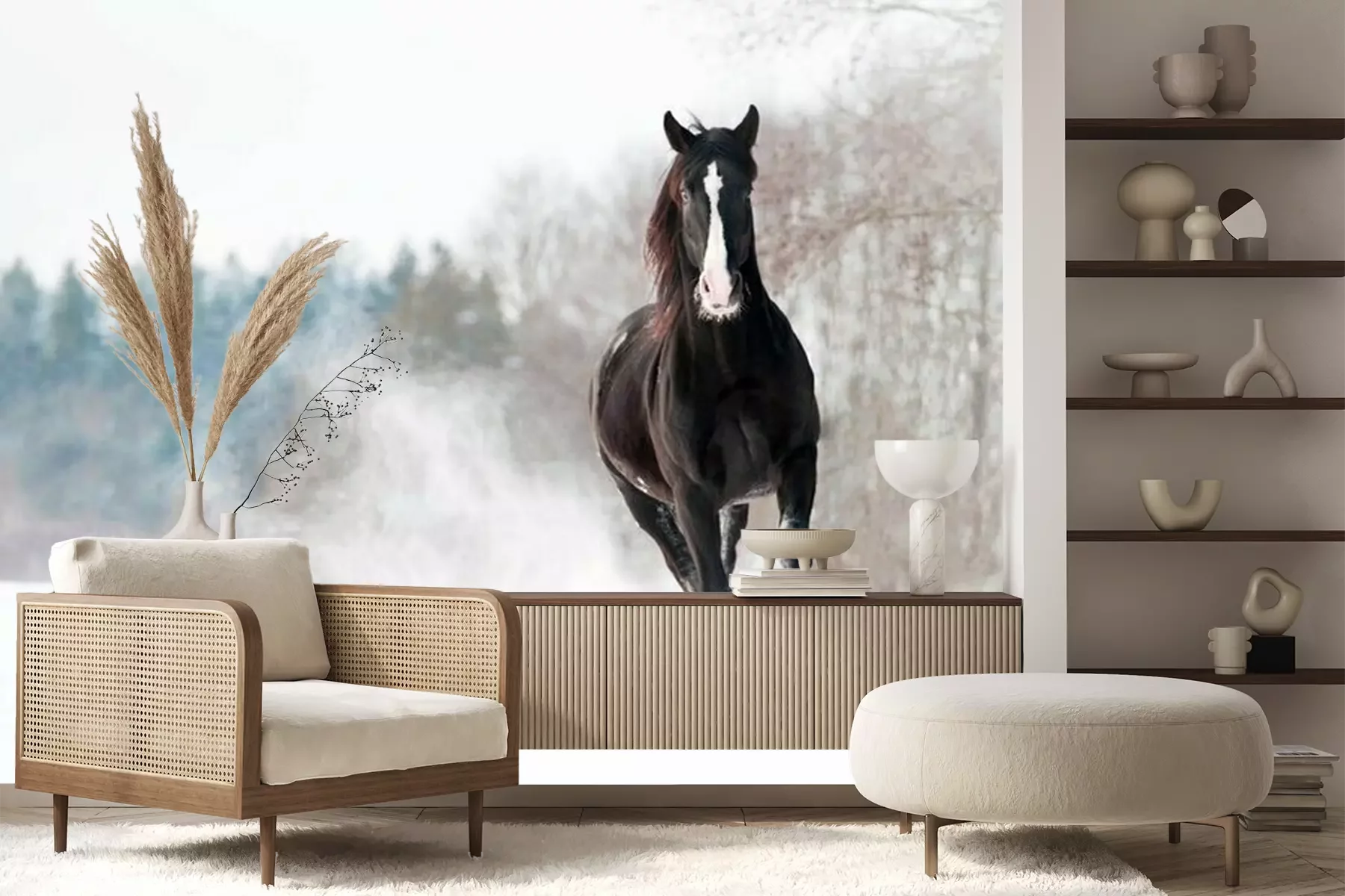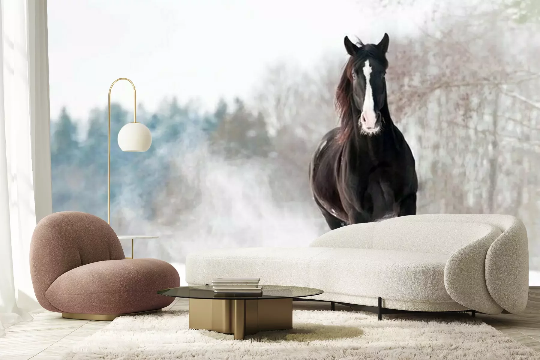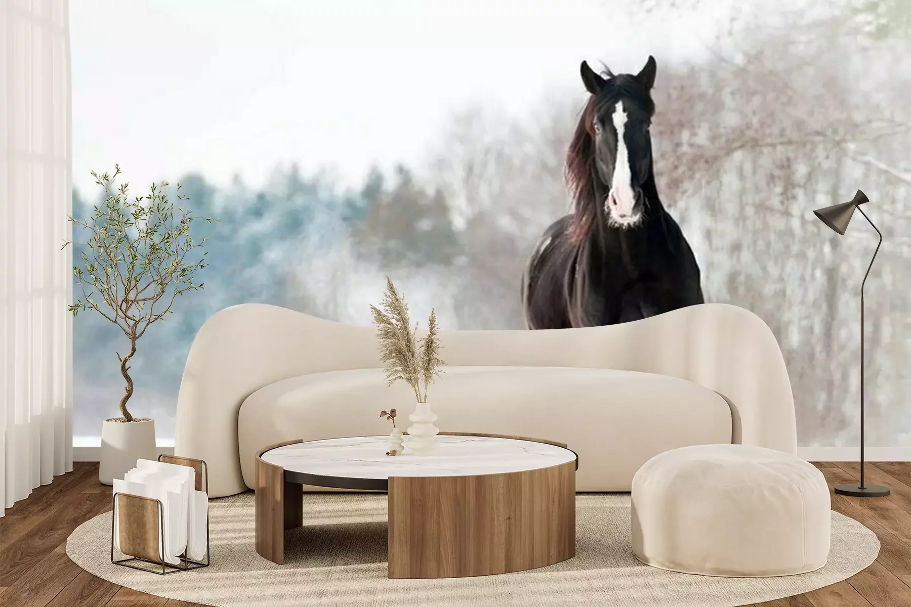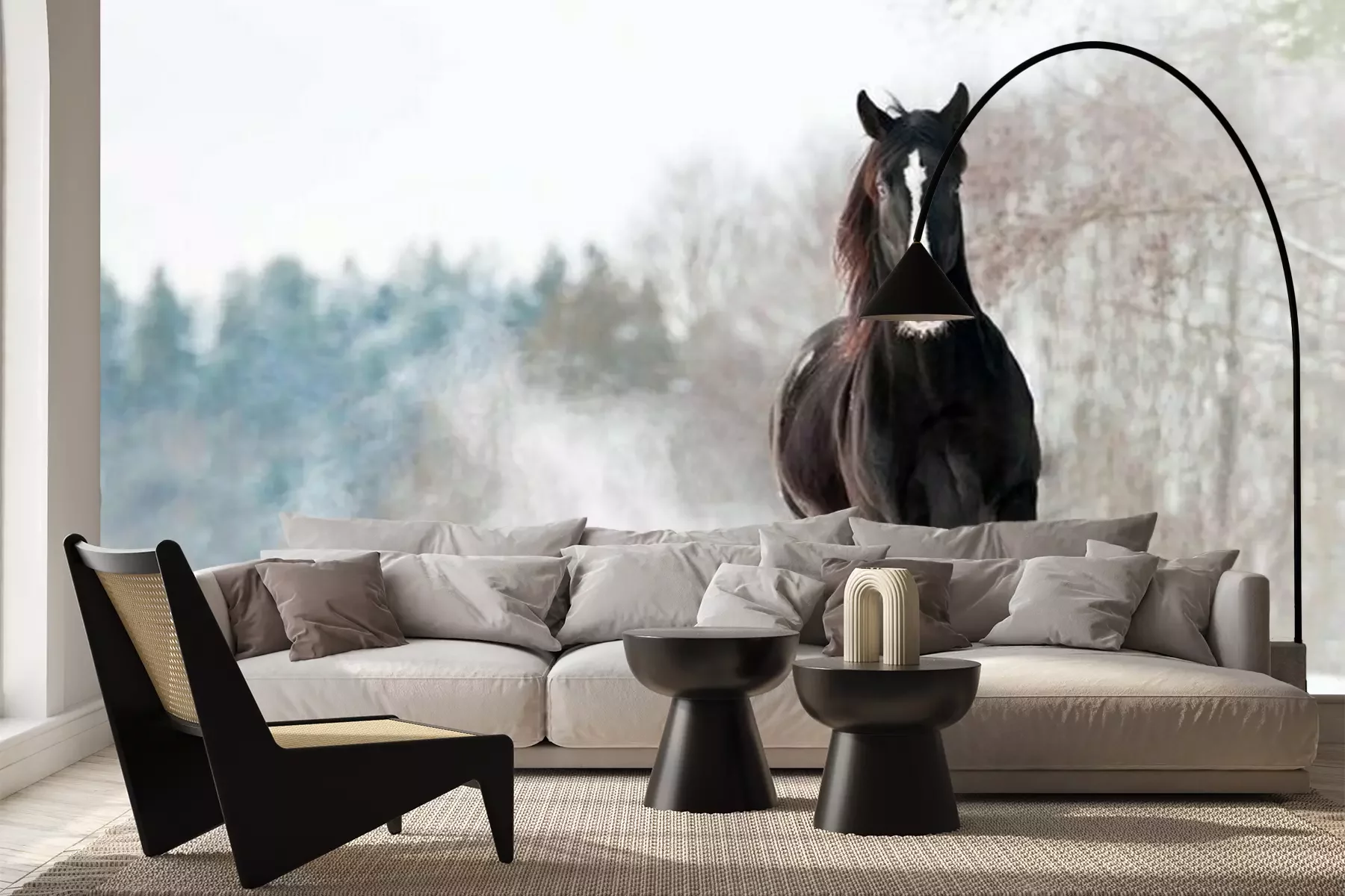 Een gevlekt paard in de winter.Probleemloze bezorging verzorgd door vertrouwde vervoerders