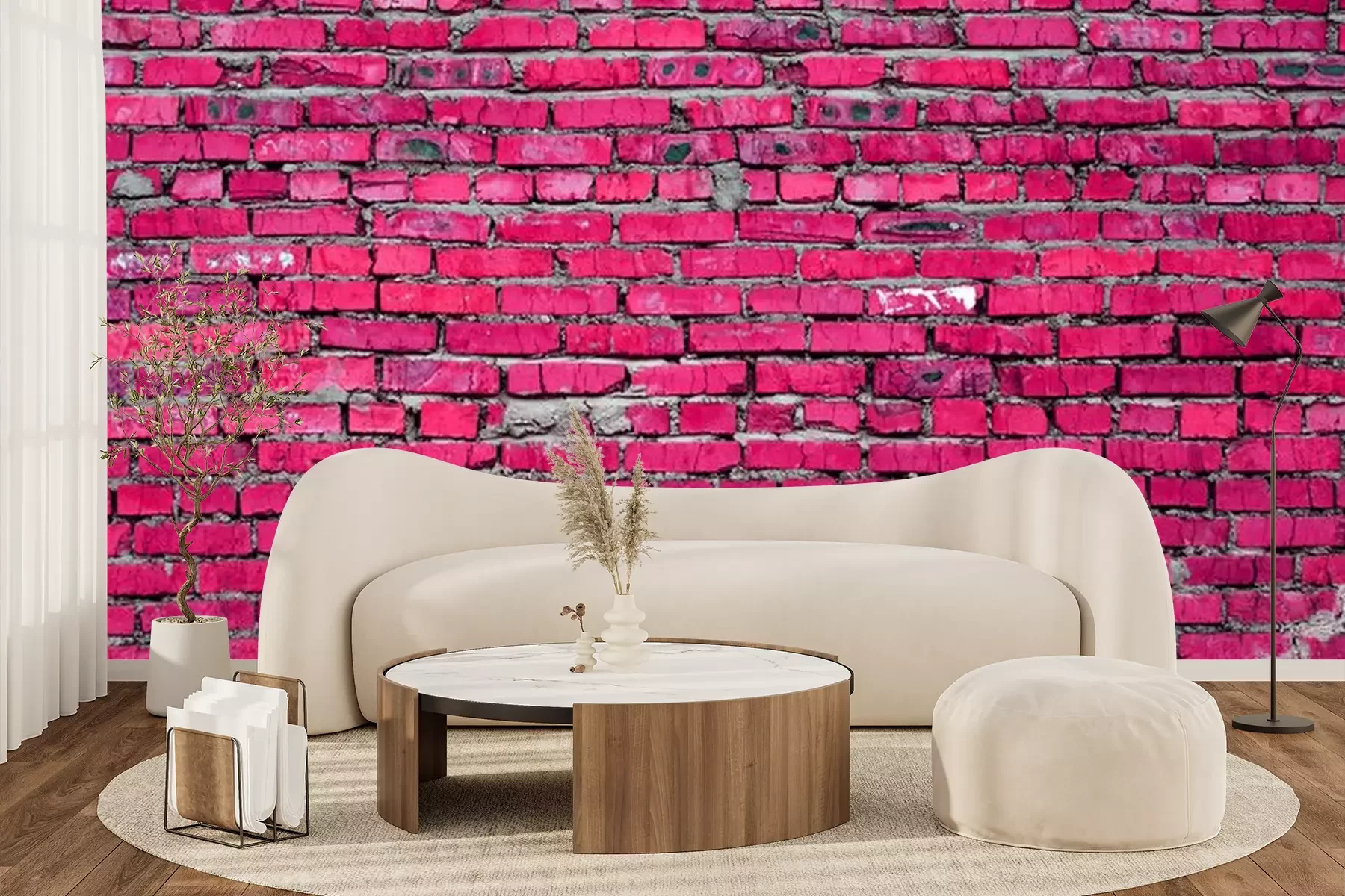 Fotobehang Donkerroze bakstenen
