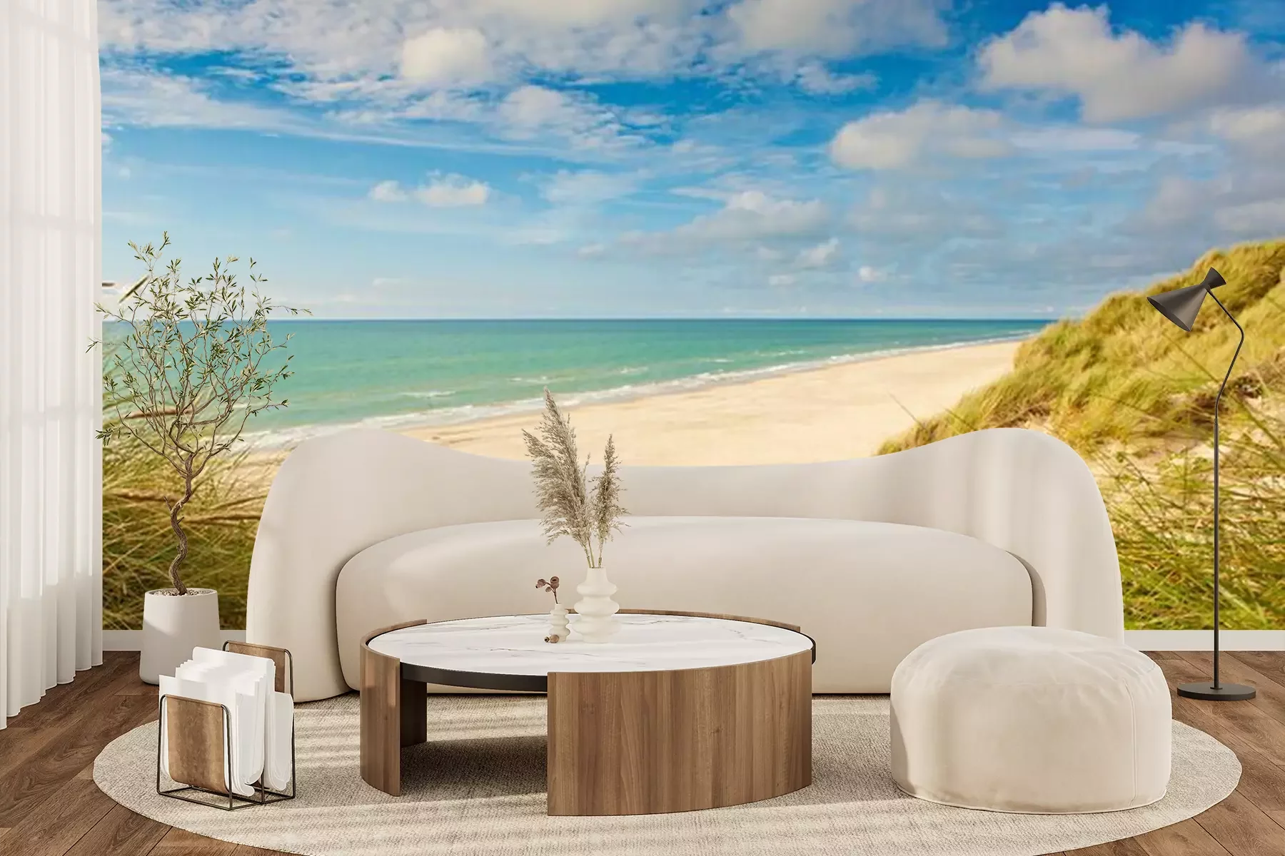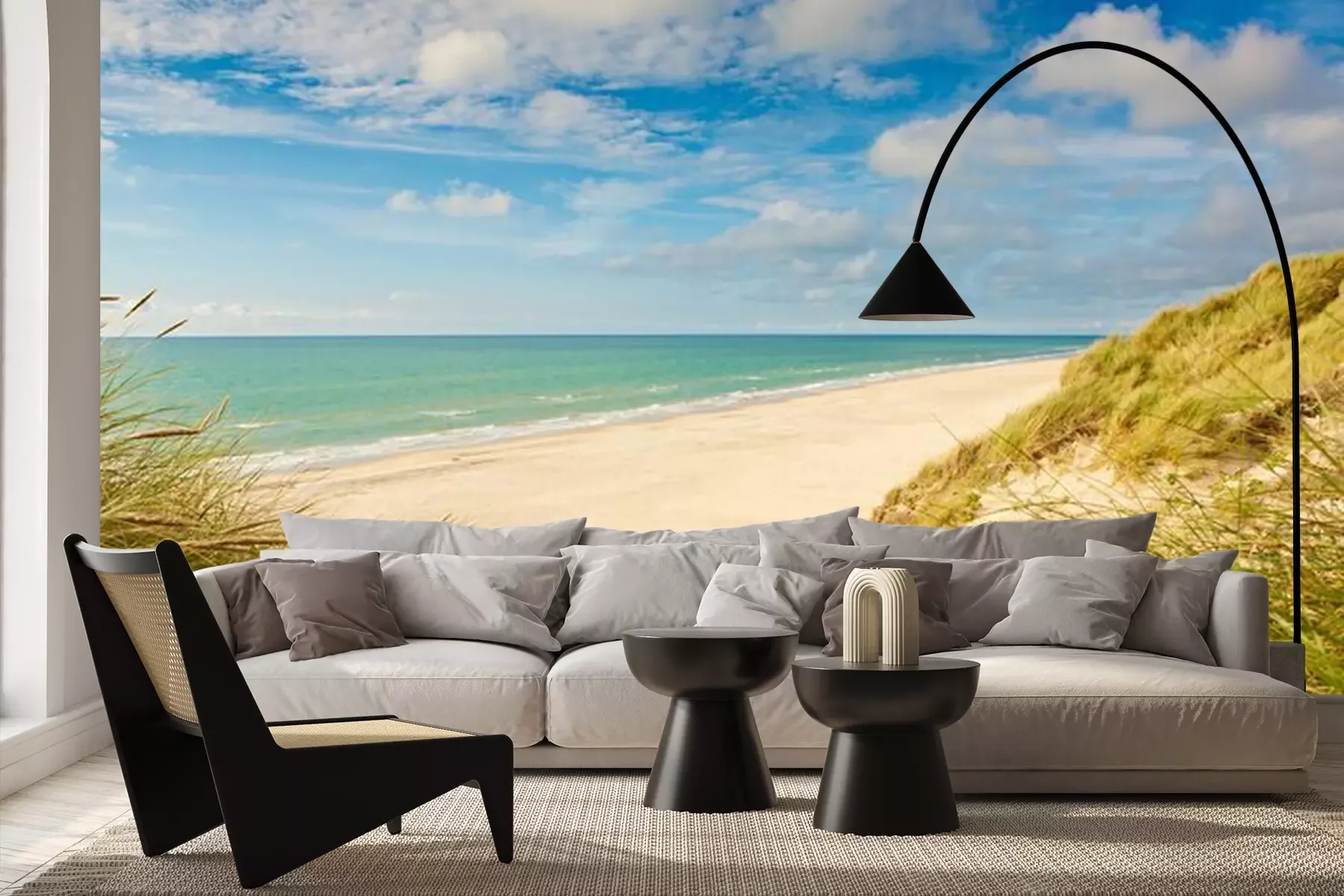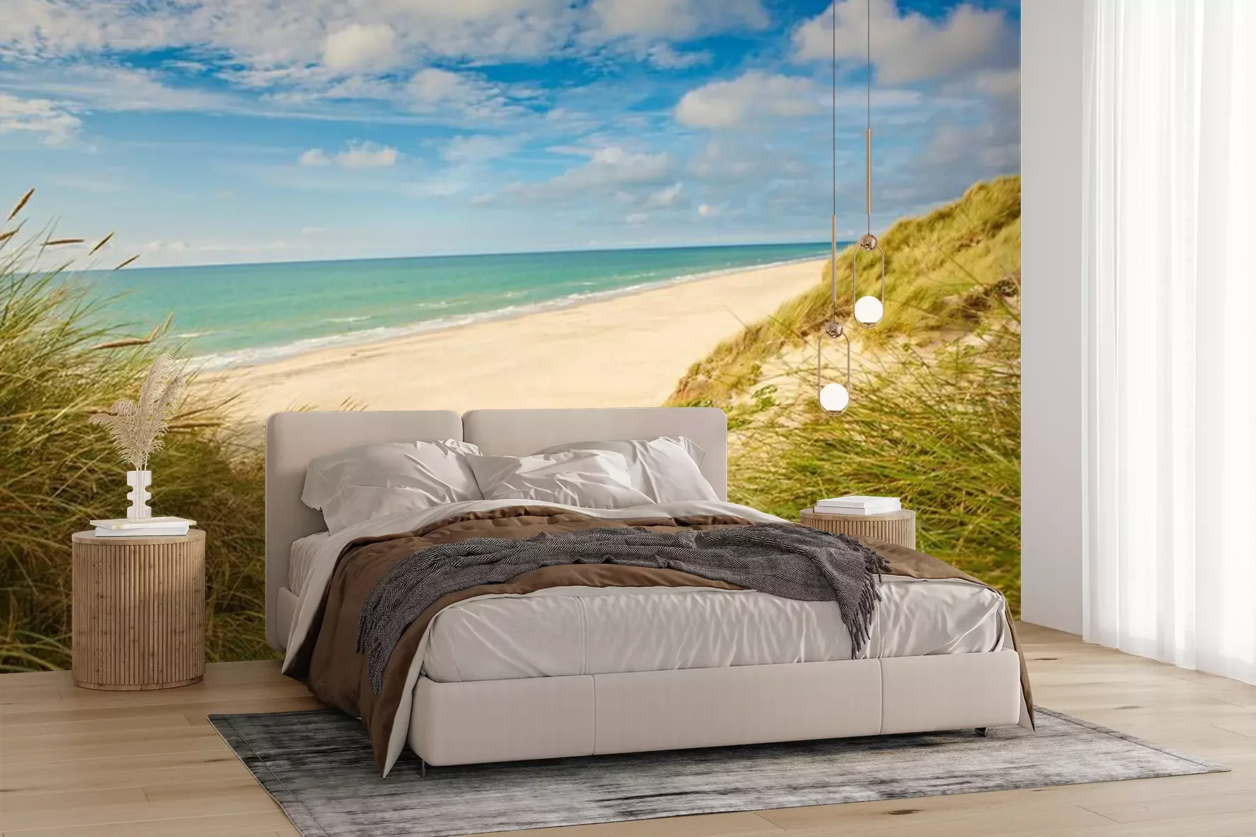 Het materiaal Premium+ is een gestructureerd vinyl op vlies met een gewicht van 255 g/m², dat kleine oneffenheden in de muur effectief camoufleert. De subtiele structuur van fijn zand geeft het oppervlak een exclusieve uitstraling, terwijl de halfmatte afwerking de diepte van de kleuren benadrukt. Het materiaal is dampdoorlatend, waardoor het ook in de keuken en badkamer kan worden gebruikt. De maximale breedte van één baan bedraagt 100 cm – bij grotere afmetingen wordt het fotobehang in meerdere gelijke banen verdeeld. De lijm wordt direct op de muur aangebracht en het behang wordt rand-aan-rand geplakt, wat zorgt voor een esthetisch resultaat zonder zichtbare naden. Het oppervlak kan gemakkelijk worden schoongemaakt door het voorzichtig af te nemen met een vochtige doek.