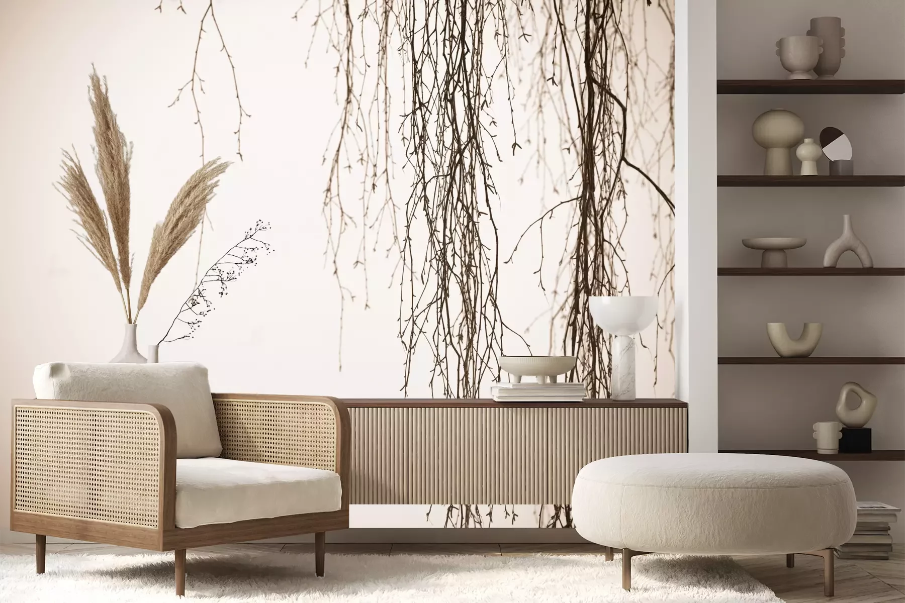 Het materiaal Premium+ is een gestructureerd vinyl op vlies met een gewicht van 255 g/m², dat kleine oneffenheden in de muur effectief camoufleert. De subtiele structuur van fijn zand geeft het oppervlak een exclusieve uitstraling, terwijl de halfmatte afwerking de diepte van de kleuren benadrukt. Het materiaal is dampdoorlatend, waardoor het ook in de keuken en badkamer kan worden gebruikt. De maximale breedte van één baan bedraagt 100 cm – bij grotere afmetingen wordt het fotobehang in meerdere gelijke banen verdeeld. De lijm wordt direct op de muur aangebracht en het behang wordt rand-aan-rand geplakt, wat zorgt voor een esthetisch resultaat zonder zichtbare naden. Het oppervlak kan gemakkelijk worden schoongemaakt door het voorzichtig af te nemen met een vochtige doek.