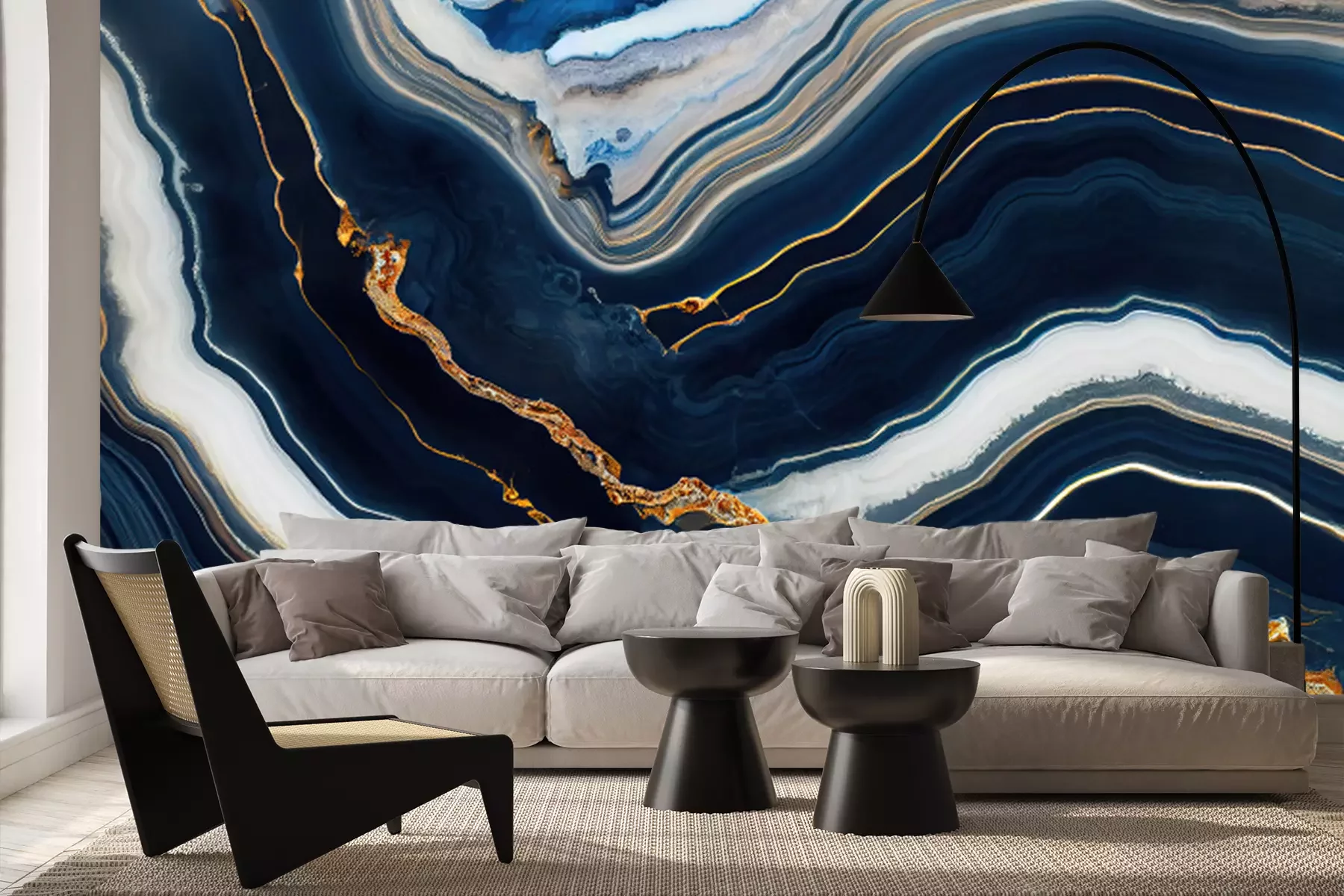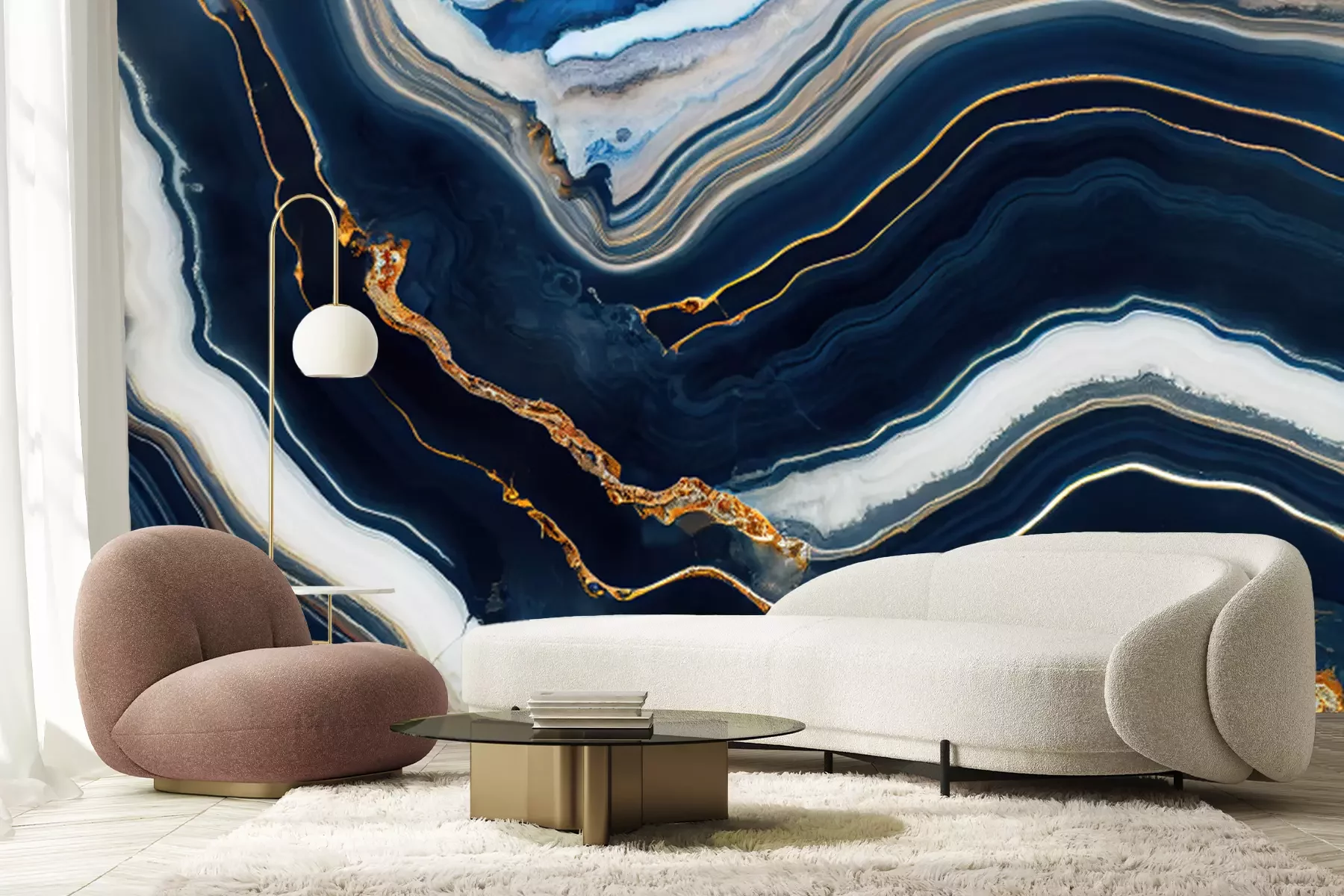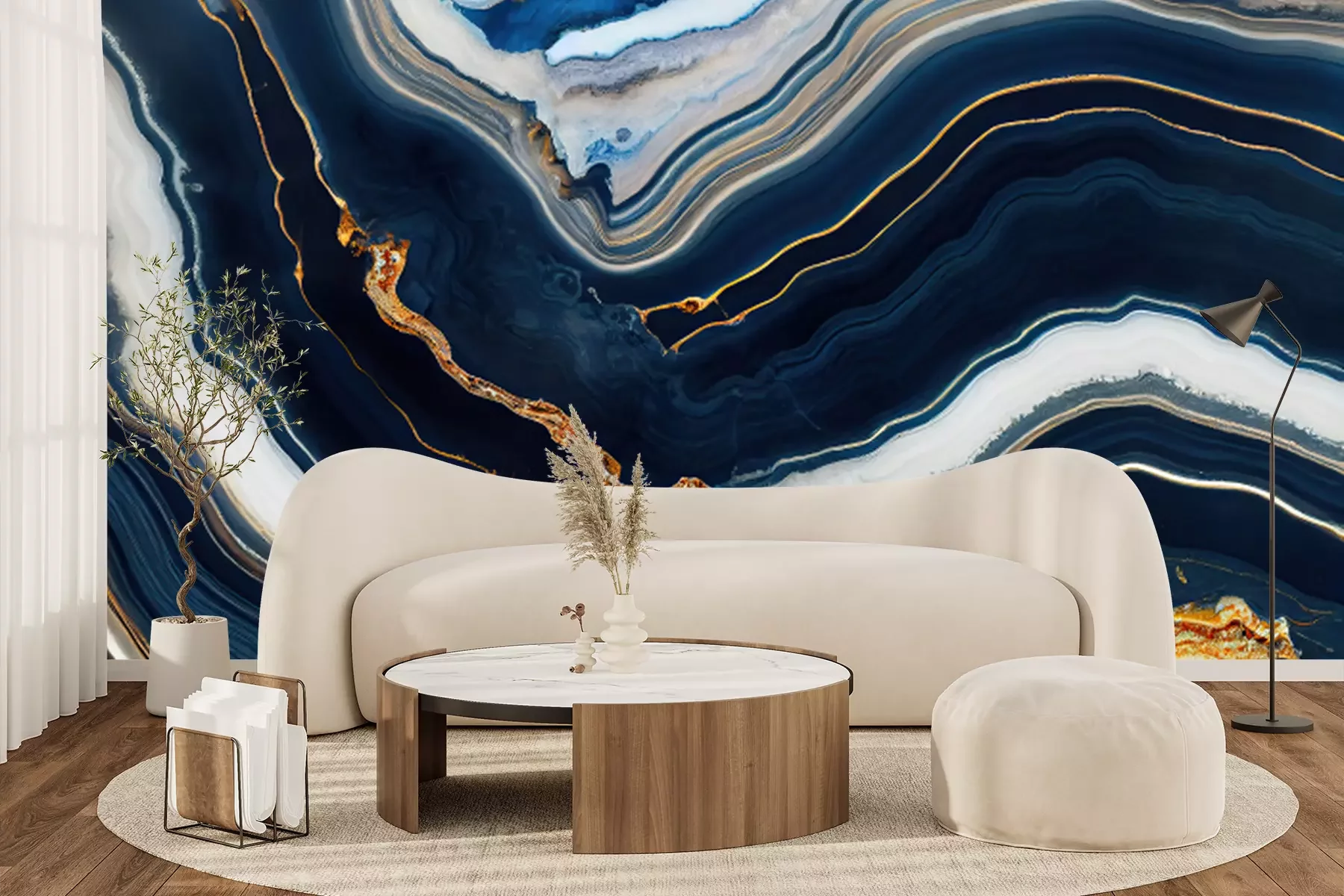 Fotobehang Dwarsdoorsnede van een marineblauwe rots