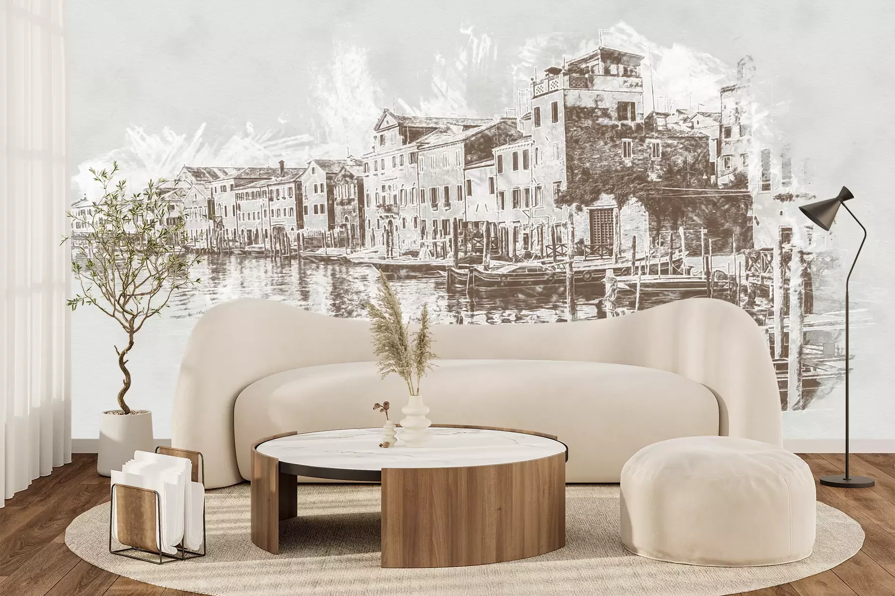 Het materiaal Premium+ is een gestructureerd vinyl op vlies met een gewicht van 255 g/m², dat kleine oneffenheden in de muur effectief camoufleert. De subtiele structuur van fijn zand geeft het oppervlak een exclusieve uitstraling, terwijl de halfmatte afwerking de diepte van de kleuren benadrukt. Het materiaal is dampdoorlatend, waardoor het ook in de keuken en badkamer kan worden gebruikt. De maximale breedte van één baan bedraagt 100 cm – bij grotere afmetingen wordt het fotobehang in meerdere gelijke banen verdeeld. De lijm wordt direct op de muur aangebracht en het behang wordt rand-aan-rand geplakt, wat zorgt voor een esthetisch resultaat zonder zichtbare naden. Het oppervlak kan gemakkelijk worden schoongemaakt door het voorzichtig af te nemen met een vochtige doek.