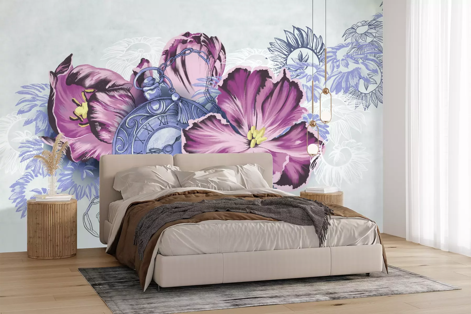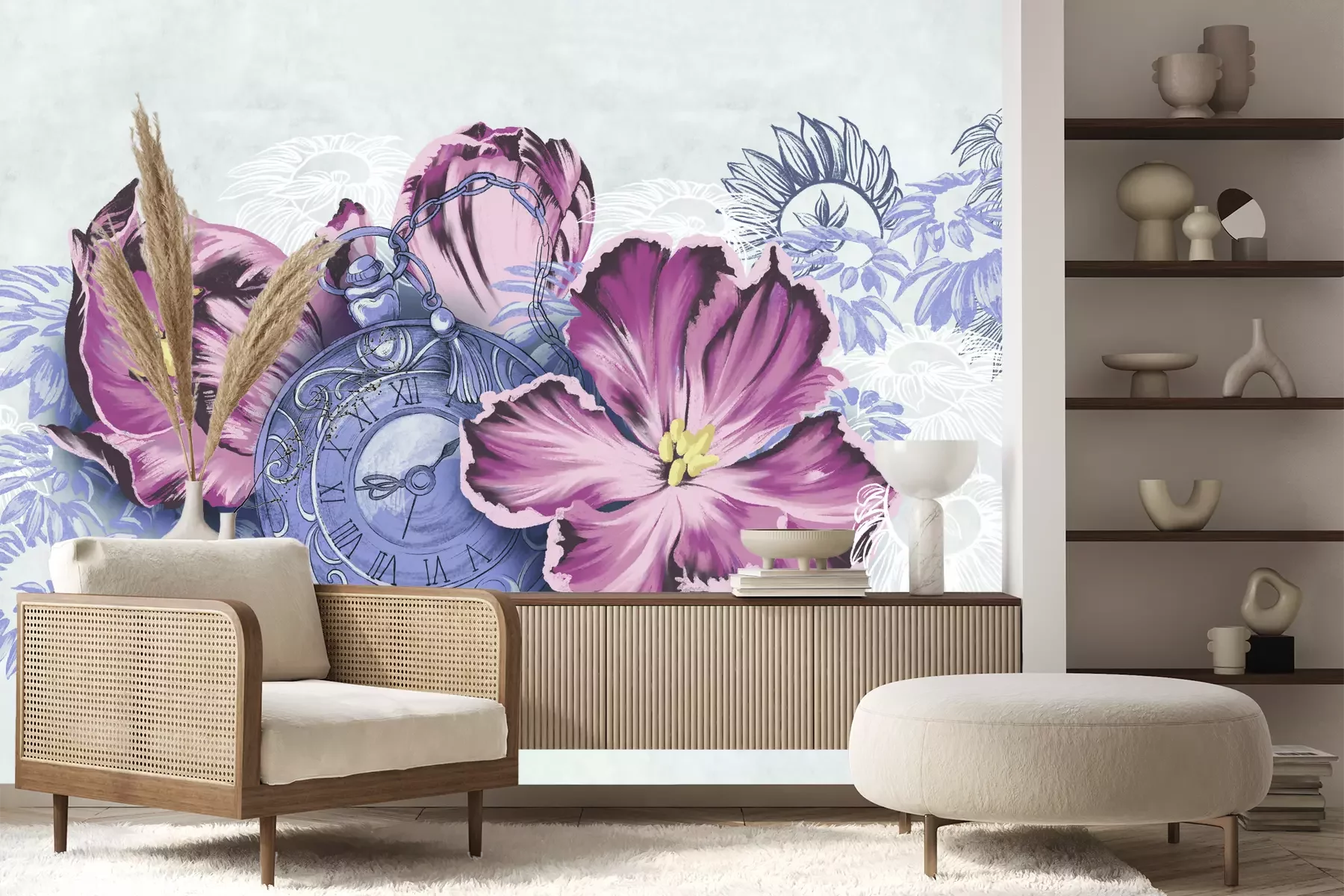 Het materiaal Premium+ is een gestructureerd vinyl op vlies met een gewicht van 255 g/m², dat kleine oneffenheden in de muur effectief camoufleert. De subtiele structuur van fijn zand geeft het oppervlak een exclusieve uitstraling, terwijl de halfmatte afwerking de diepte van de kleuren benadrukt. Het materiaal is dampdoorlatend, waardoor het ook in de keuken en badkamer kan worden gebruikt. De maximale breedte van één baan bedraagt 100 cm – bij grotere afmetingen wordt het fotobehang in meerdere gelijke banen verdeeld. De lijm wordt direct op de muur aangebracht en het behang wordt rand-aan-rand geplakt, wat zorgt voor een esthetisch resultaat zonder zichtbare naden. Het oppervlak kan gemakkelijk worden schoongemaakt door het voorzichtig af te nemen met een vochtige doek.