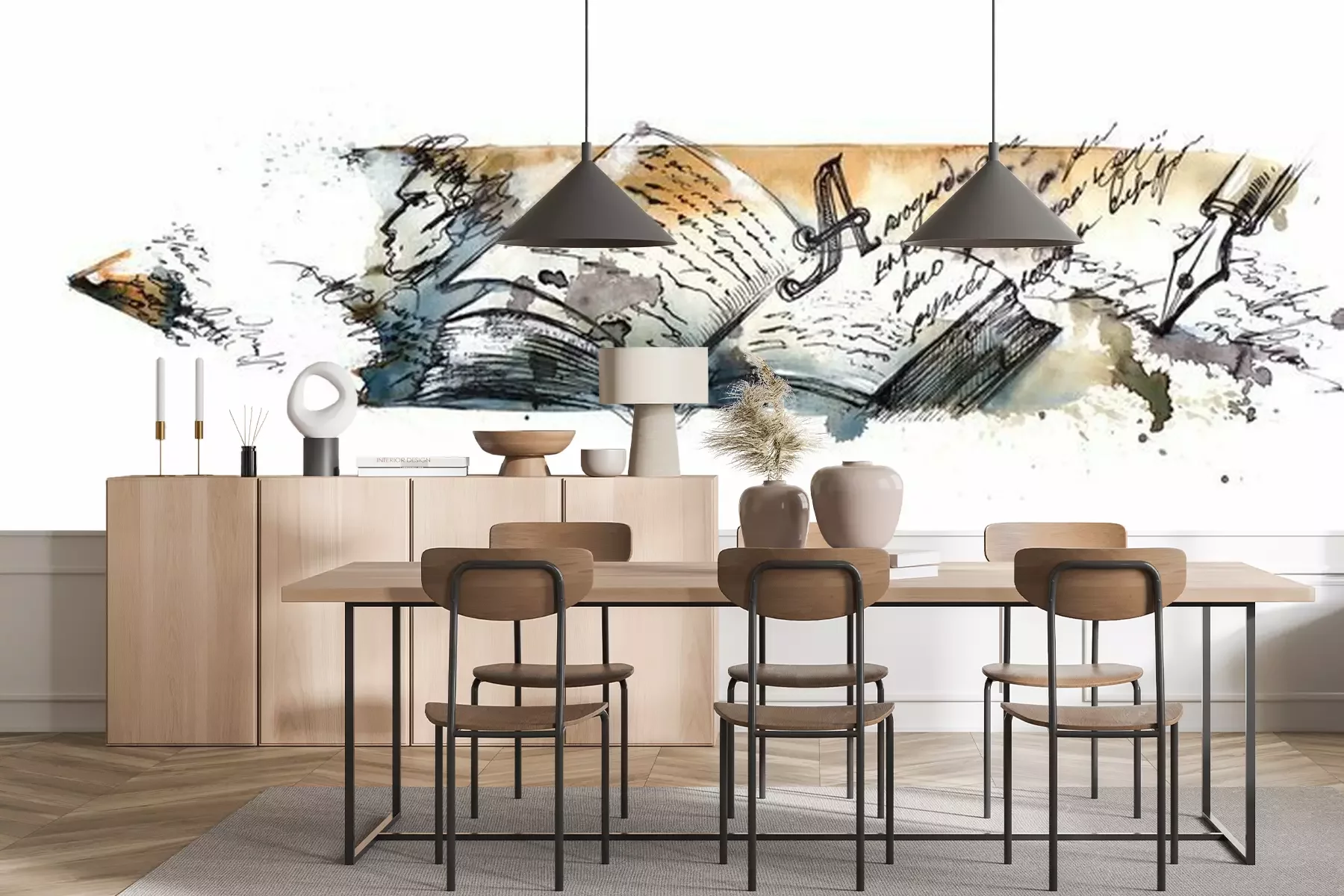 Het materiaal Premium+ is een gestructureerd vinyl op vlies met een gewicht van 255 g/m², dat kleine oneffenheden in de muur effectief camoufleert. De subtiele structuur van fijn zand geeft het oppervlak een exclusieve uitstraling, terwijl de halfmatte afwerking de diepte van de kleuren benadrukt. Het materiaal is dampdoorlatend, waardoor het ook in de keuken en badkamer kan worden gebruikt. De maximale breedte van één baan bedraagt 100 cm – bij grotere afmetingen wordt het fotobehang in meerdere gelijke banen verdeeld. De lijm wordt direct op de muur aangebracht en het behang wordt rand-aan-rand geplakt, wat zorgt voor een esthetisch resultaat zonder zichtbare naden. Het oppervlak kan gemakkelijk worden schoongemaakt door het voorzichtig af te nemen met een vochtige doek.
